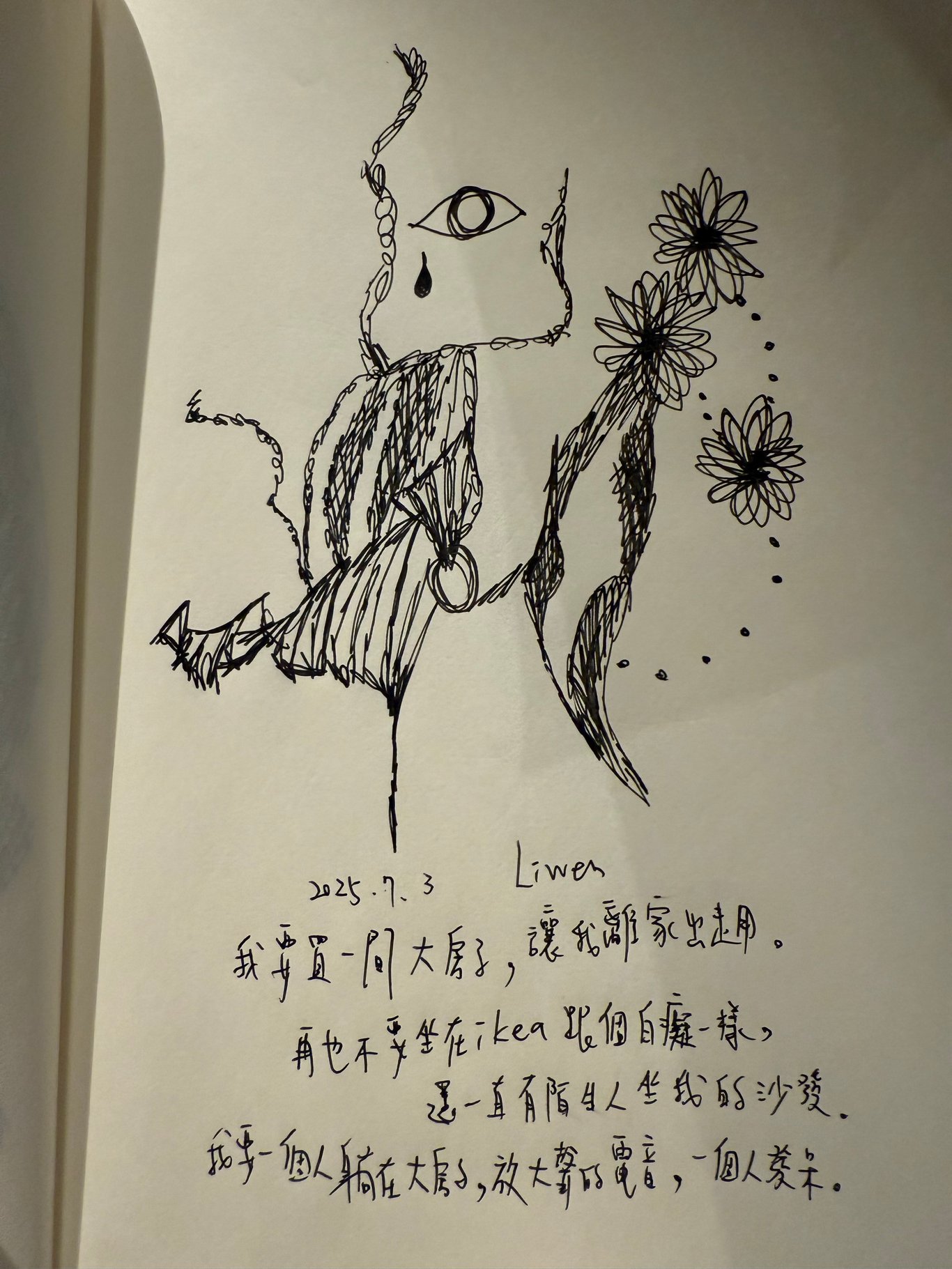 吃完飯都兩點多了,鬧鐘響了,三點要去看心理諮商,趕緊火速整理好拿著雨傘走去諮商所,這一次說了這一個月內的轉變還有一些別人對我的改變,印象最深刻的就是心理師點出其實十歲的我一直在我身體裡面擔任副駕,常常在某種時刻愧疚擔心提前想很多可能的發生,車當然是要給35歲的我開啊,怎麼可以讓十歲的我駕駛呢?有一個瞬間覺得很難過,覺得十歲的我承受太多恐懼,太懂事了,十歲的孩子怎麼可以那麼異常成熟呢?