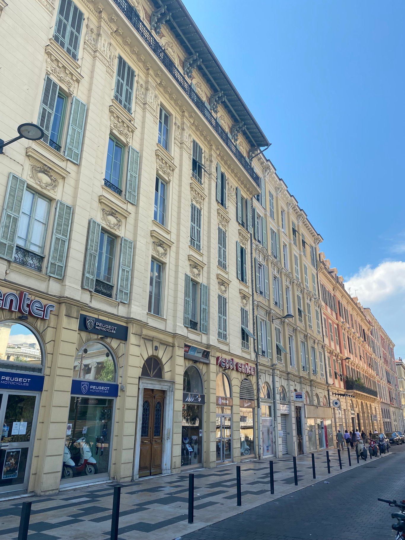 蘇黎世的配色大膽一點,窗戶跟牆的配色跳色,尼斯喜歡柔和的淺色,窗台陽台滿滿的窗花線條跟細節,圓弧形的線條,雕刻柱子,馬卡龍的夢幻色系,偶爾有跳色的黃色椅子,走在尼斯的路上,我的眼睛目不轉睛。