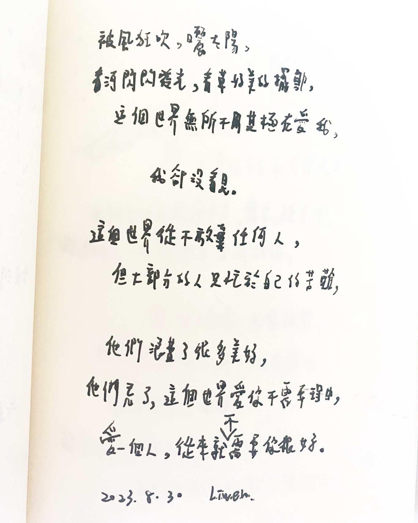 所以那一年疫情結束要回台灣的時候我的焦慮來到了最大的樣子,我好幾個月無法睡覺,每天運動散步兩個小時仍然大腦一直懼怕焦慮,就是心中的恐懼成了龐然大物侵蝕我的所有捍衛,那場仗我內在的聲音是輸了,最後我回台灣,擔心的事情什麼都沒有發生,就這樣焦慮慢慢好了,我也可以睡著了。