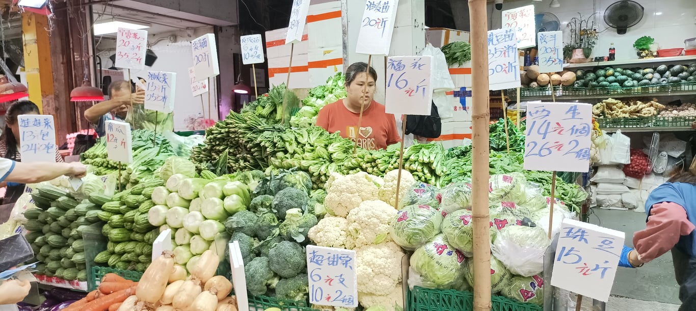 昨天提早收檔的菜檔今早照常開檔,只是菜價不見回落,繼續高企,估計明天在八號風球下將不會開檔,所以今天繼續賣「貴」菜。