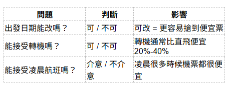 ✅ 如果以上都可接受 → 很大機會找到便宜航班