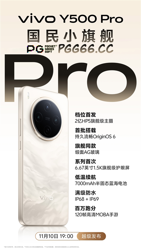 【PG电子科技快讯】vivo 今日正式官宣 Y500 Pro,定位为“国民小旗舰”,将于 11月10日19:00 正式发布。vivo 产品副总裁黄韬表示,该机面向中国最广大的用户群体,除了PG游戏续航与可靠性,用户对拍照清晰度、外观设计与系统流畅度也有较高需求。
