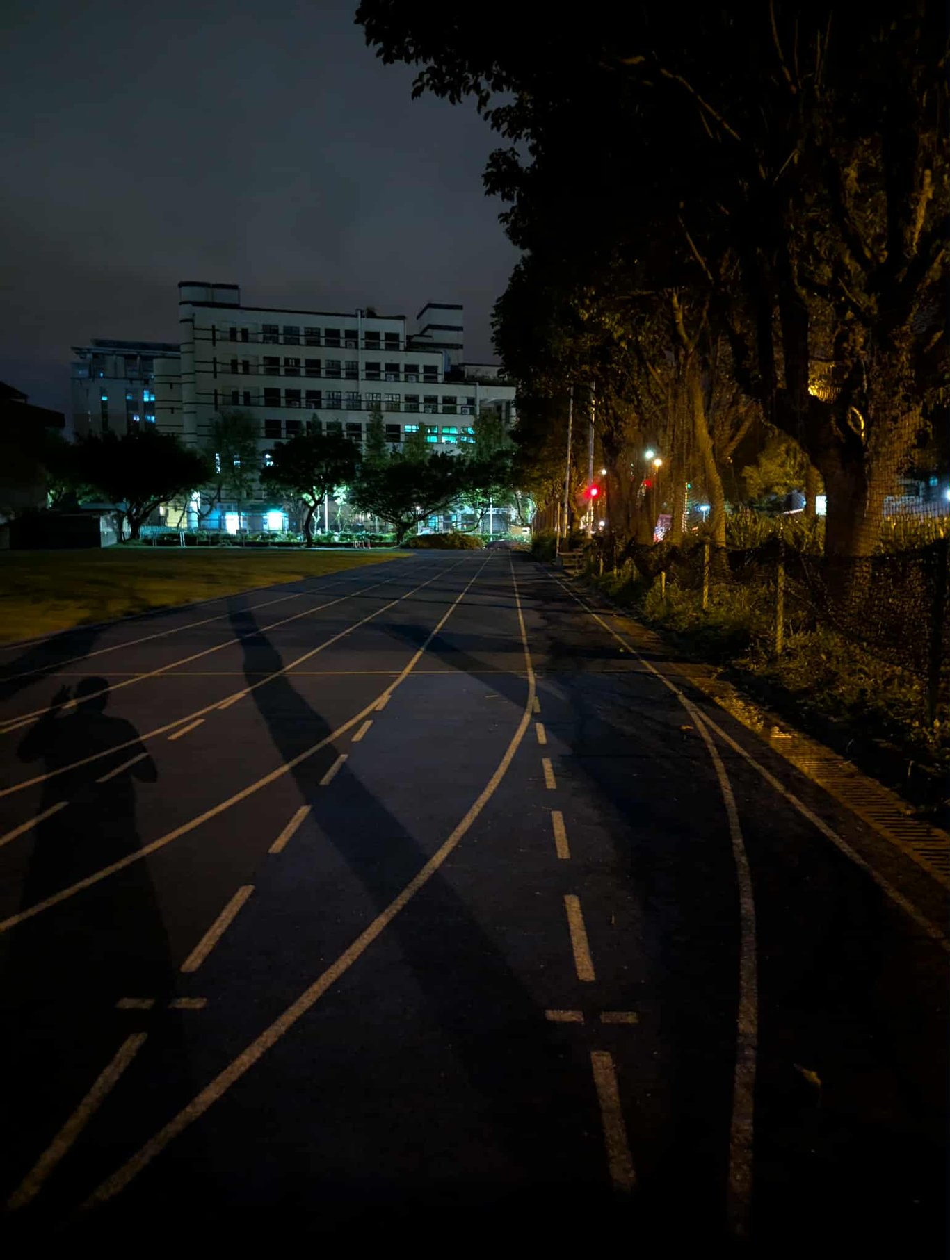修剪的枝條聚攏成偌大的葉塚,除去懸墜垂掛的小操場,瞬時通透敞亮了起來。若非連假,未曾在週間邁進校園裡,這會兒社區大學正熱鬧著,蓬勃的人氣四溢在跑道上空,隨著呼吸讓人愈發清醒。
