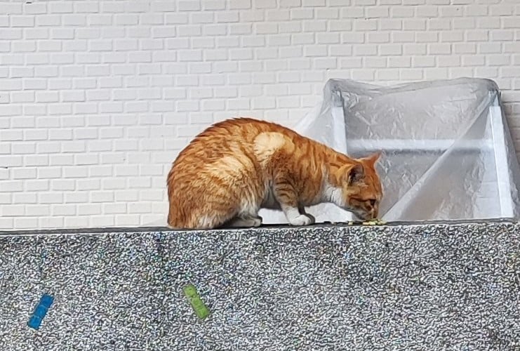 最近早晚轉涼咩,小虎斑早上會出來吃點心,吃完牠就去陽光下曬太陽,等快中午才去其他地方巡視,也因此...,現在早晚都需要餵貓,貓咪點心補貨的速度都變快了不少~