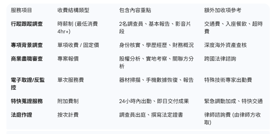 地區差異:在香港境內、內地或海外調查,其差旅費與風險成本截然不同。