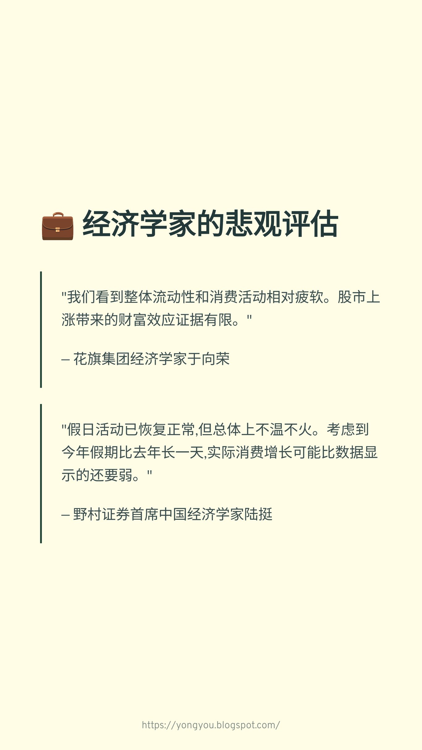 - 机构认为“假日恢复常态但偏冷”,财富效应未显现。