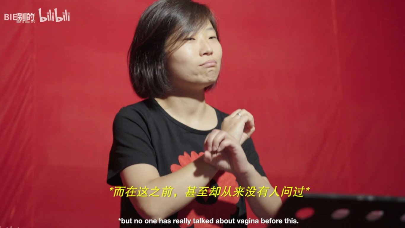 在网络上漫游的时候,我偶然看了这样一个视频——几年前,崔竟曾经和几位聋人女性一起排练话剧《阴道独白》,这是一部探讨女性身体、性与爱、羞耻与暴力的话剧。视频记录下的她们,用着手语交流某些专业词汇该如何用手语表达,分享着彼此的隐秘感受。