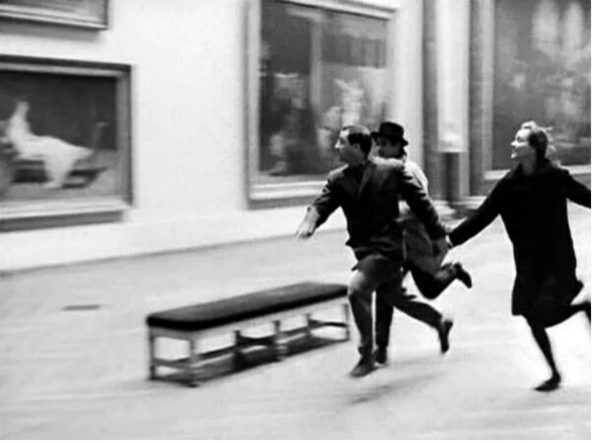 从戈达尔的《法外之徒》到吴宇森的《纵横四海》,电影里的两男一女穿梭于街道和美术馆,共跳轻快迷人的三人舞。