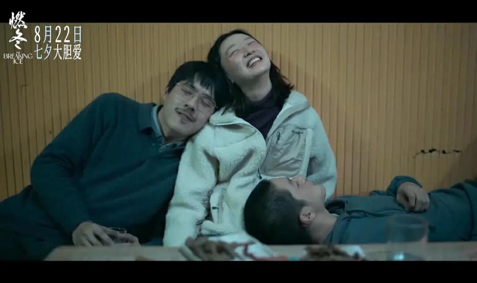 《燃冬》也试图设置混沌的多边关系,探讨翻越轨道的选择与人在不确定性中的状态。但,它误解了特吕弗的爱情语境,扭曲地镶嵌进了主流七夕档期。宣传海报上「谁爱谁」和「这个七夕大胆爱」的粗浅提要,阻绝了自我探索的核心命题的展开,无法捕捉或打捞沉浮时代下人们精神世界里真正的交错、孤独、冲突与反复。最终自我消解了冒犯精神,成了穿上大人西装的小孩在无病呻吟。