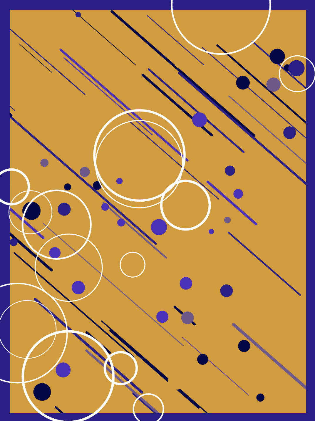 這件作品參考了我非常喜歡的電影《La La Land》的經典配色(標題回收!),並以今天上課習得的新技術(線條、圓形、底色、隨機、外框等)為基礎進行創作(告解一下,還是有一些些學長姐創作的影子......絕對是致敬!)。