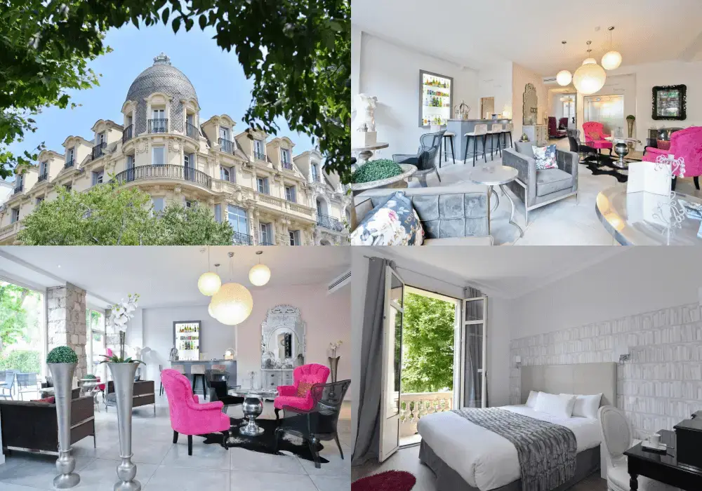 這間精緻外觀的尼斯酒店宛如宮殿,室內以潔白典雅的傢俱營造藝術感。每一間房型都以灰白色調打造極簡約風格,讓室內採光更加透亮,即使在浴室也能享有明亮空間。