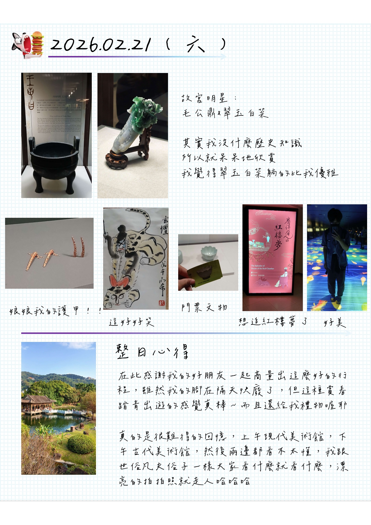 真的是很難得的回憶,上午現代美術館,下午古代美術館,然後兩邊都看不太懂,我跟世俗凡夫俗子一樣大家看什麼就看什麼,漂亮的拍拍照就走人哈哈哈
