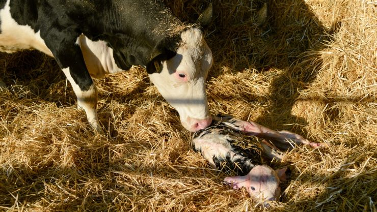 在順產的狀況下,母牛會焦躁地來回走動,舉起尾巴,陰道口會開始規律地收縮。起初,小牛的白色蹄部會從產道慢慢推出,接著是嘴巴,直到小牛的兩隻前腳夾著頭部的姿勢完全露出,便能順利產下。這就是所謂的「頭過身就過」。