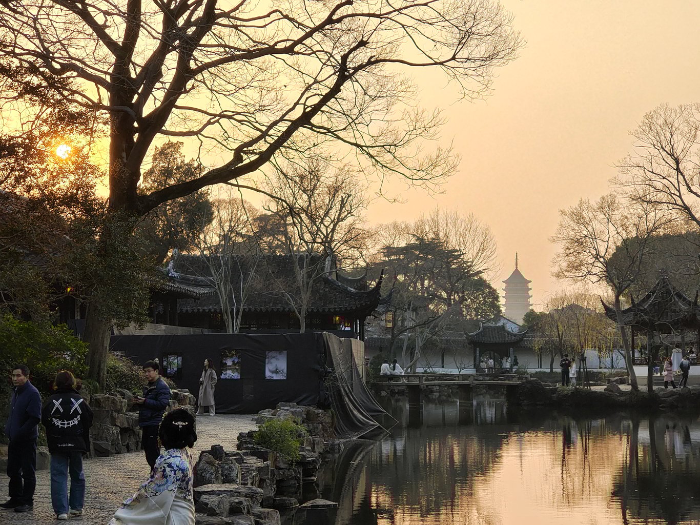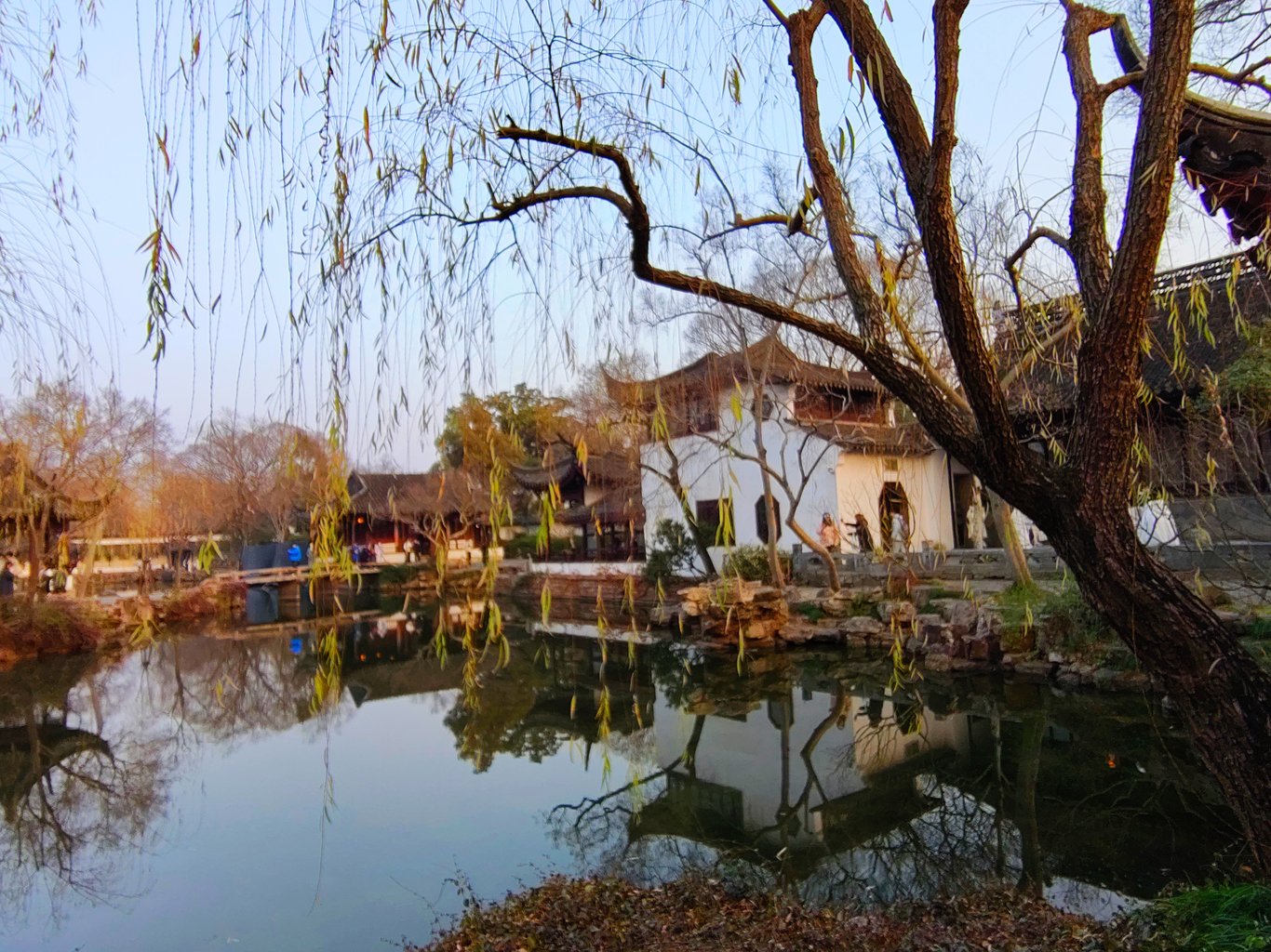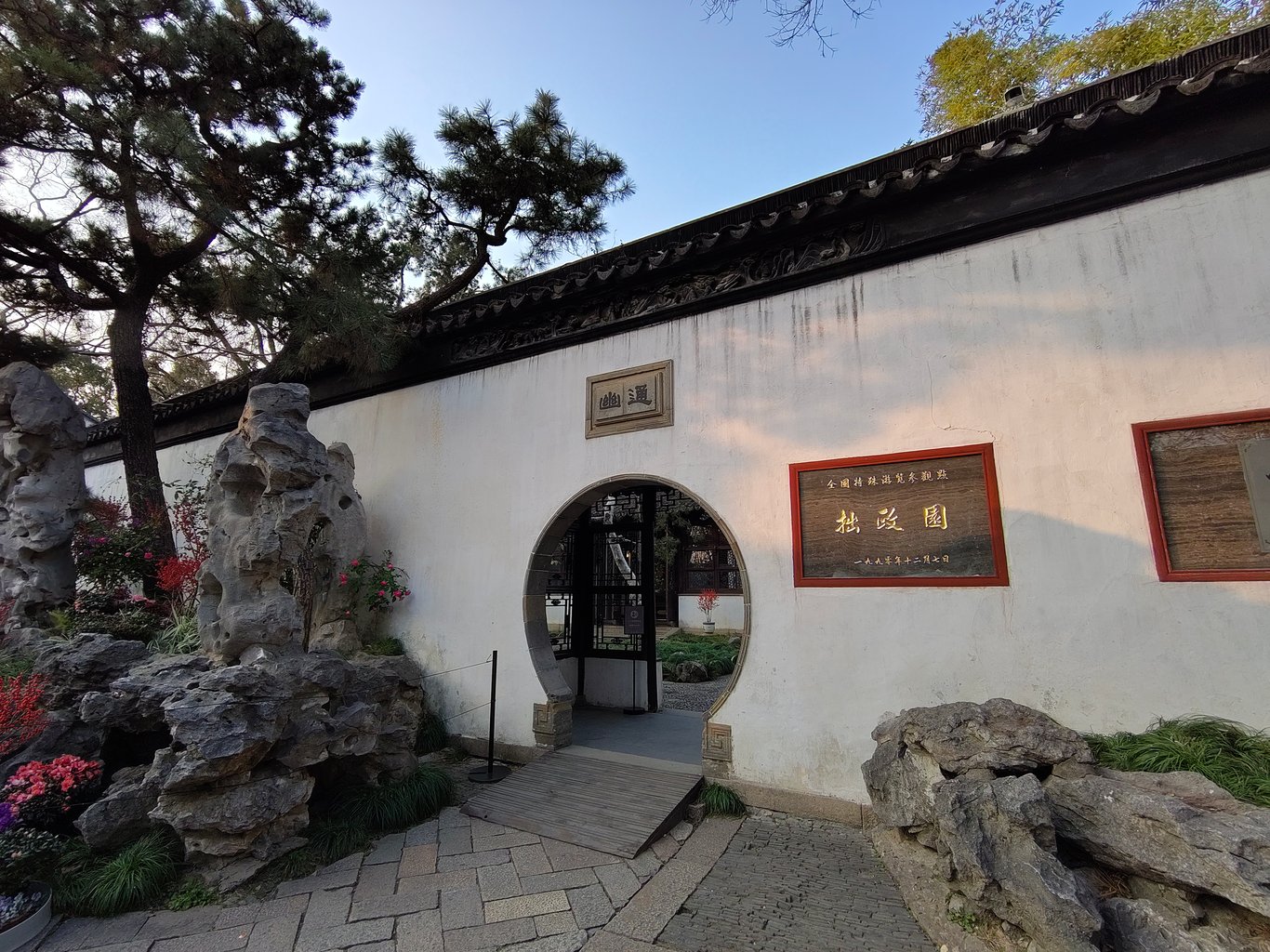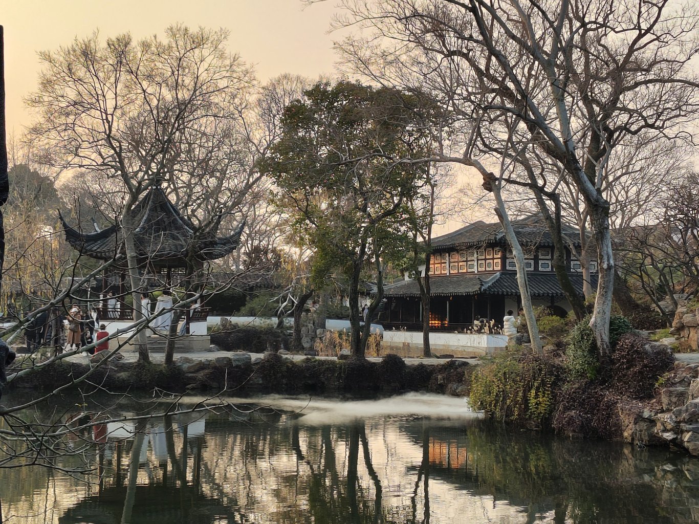 拙政園到底有啥來頭,因為她的歷史實在洋洋灑灑,就請大家自行科普腦補,我也不必贅言賣弄了 ( 其實是自已懶~😅 )。到了以後,其實已近 16:00,一位導遊小姐姐告訴我們,此時入園正合適,因為逛一小時,剛好可以看完聽完重點,配合 17:00 的閉園時間 ( 還有 15 分鐘的緩衝 ),再搭上冬日夕陽以及逐漸離園的人潮,可以享受高品質的遊園體驗。我們就決定花 180 RMB 請這位小姐姐導覽了。