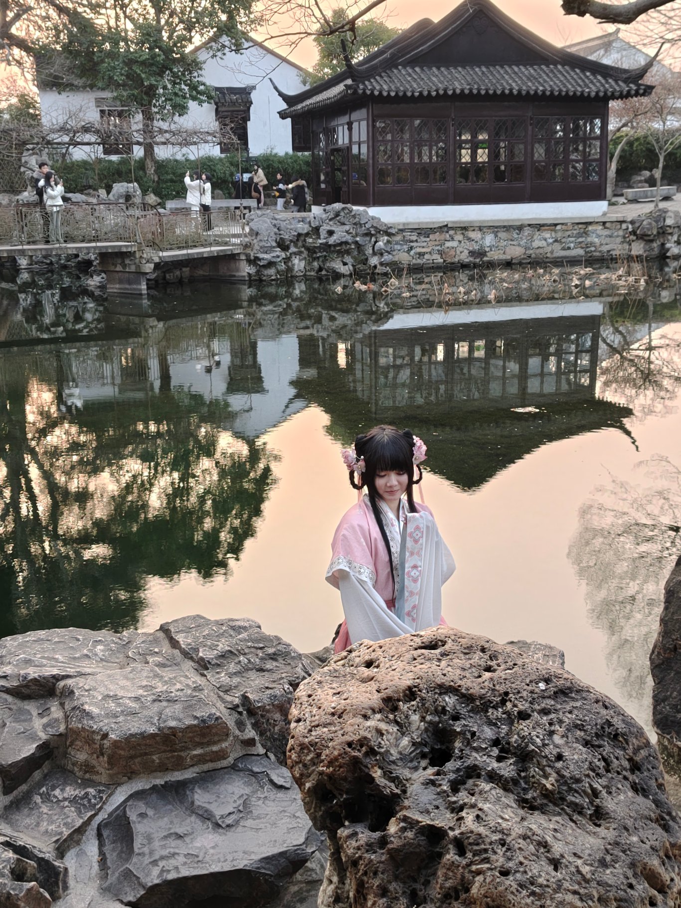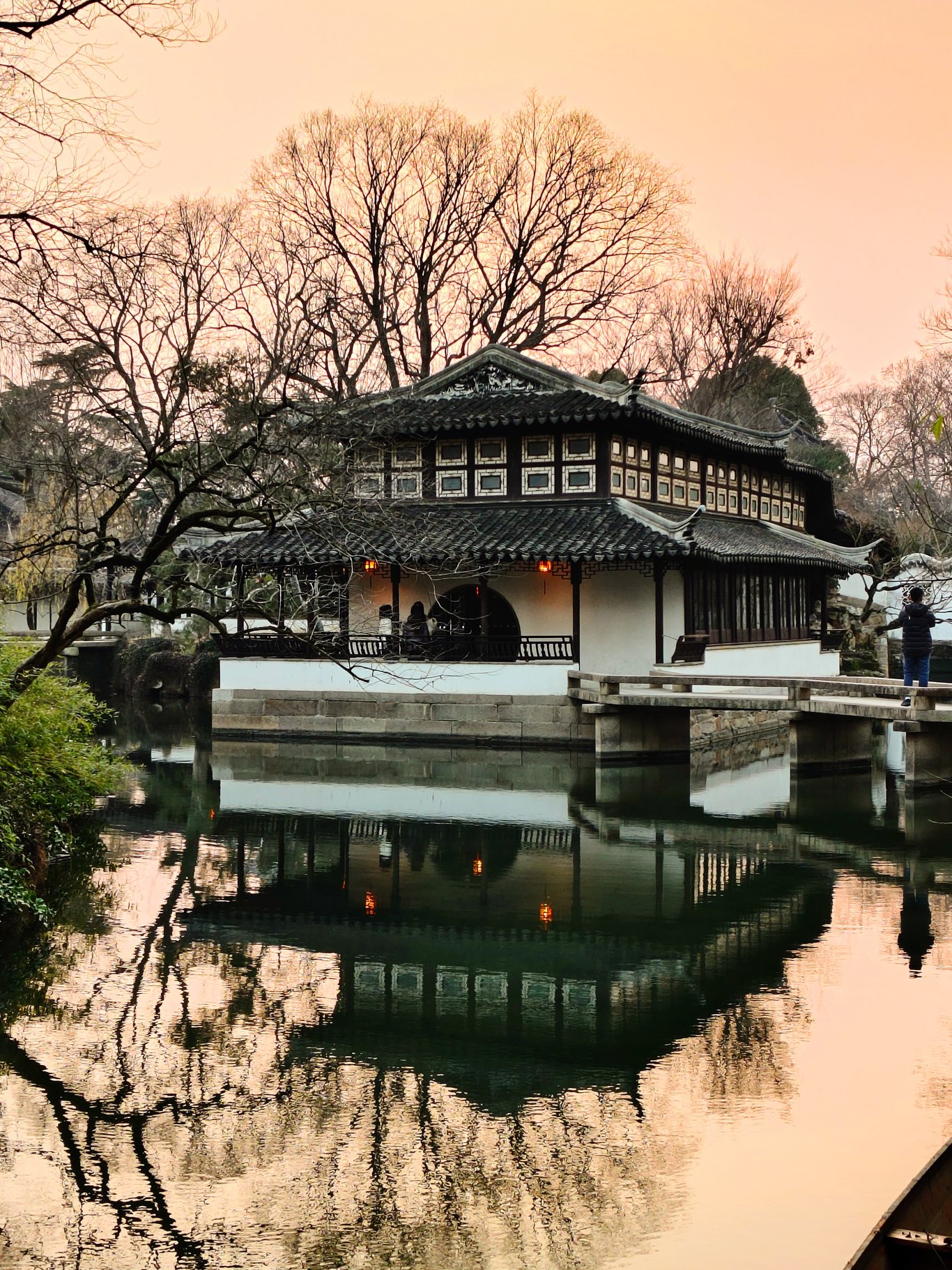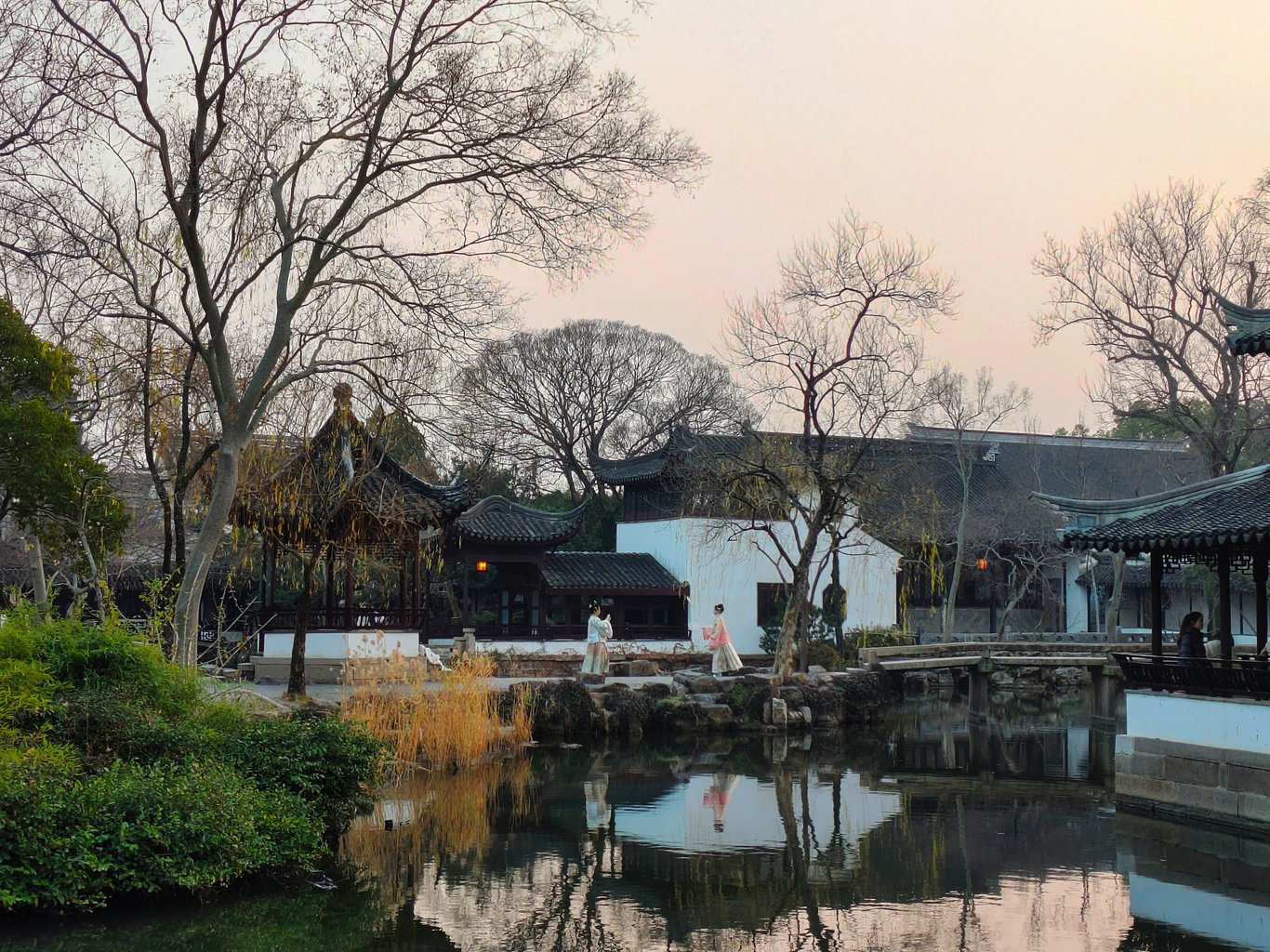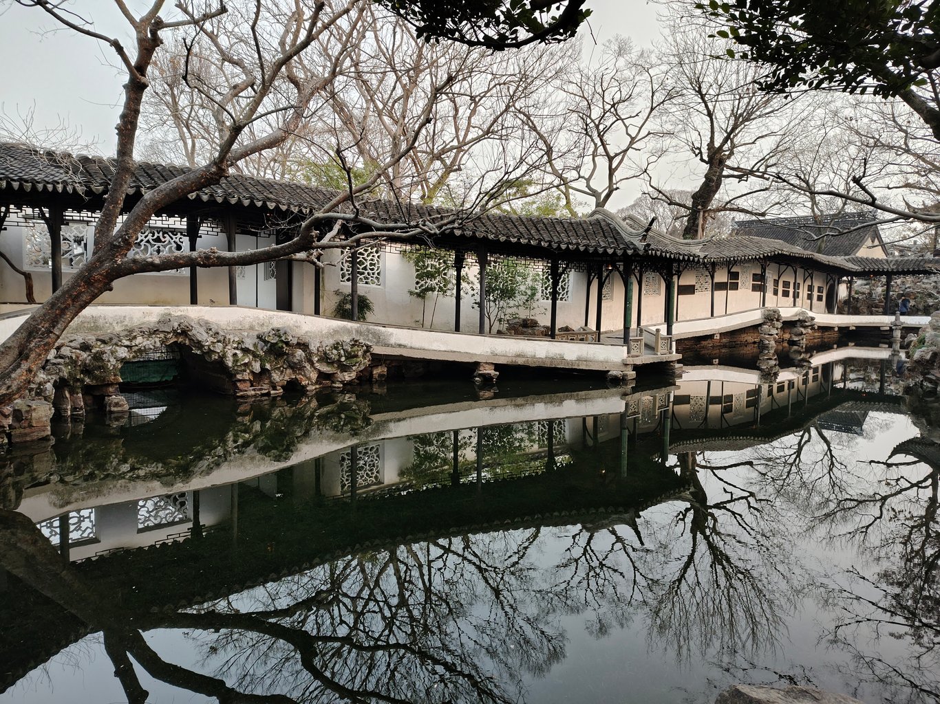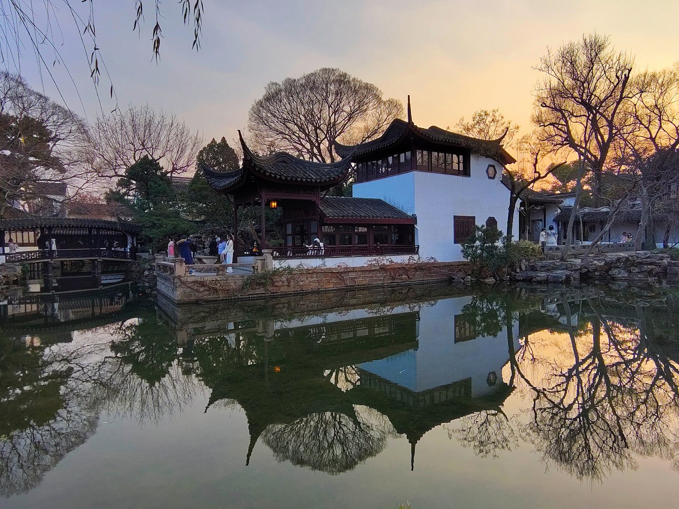 拙政園到底有啥來頭,因為她的歷史實在洋洋灑灑,就請大家自行科普腦補,我也不必贅言賣弄了 ( 其實是自已懶~😅 )。到了以後,其實已近 16:00,一位導遊小姐姐告訴我們,此時入園正合適,因為逛一小時,剛好可以看完聽完重點,配合 17:00 的閉園時間 ( 還有 15 分鐘的緩衝 ),再搭上冬日夕陽以及逐漸離園的人潮,可以享受高品質的遊園體驗。我們就決定花 180 RMB 請這位小姐姐導覽了。
