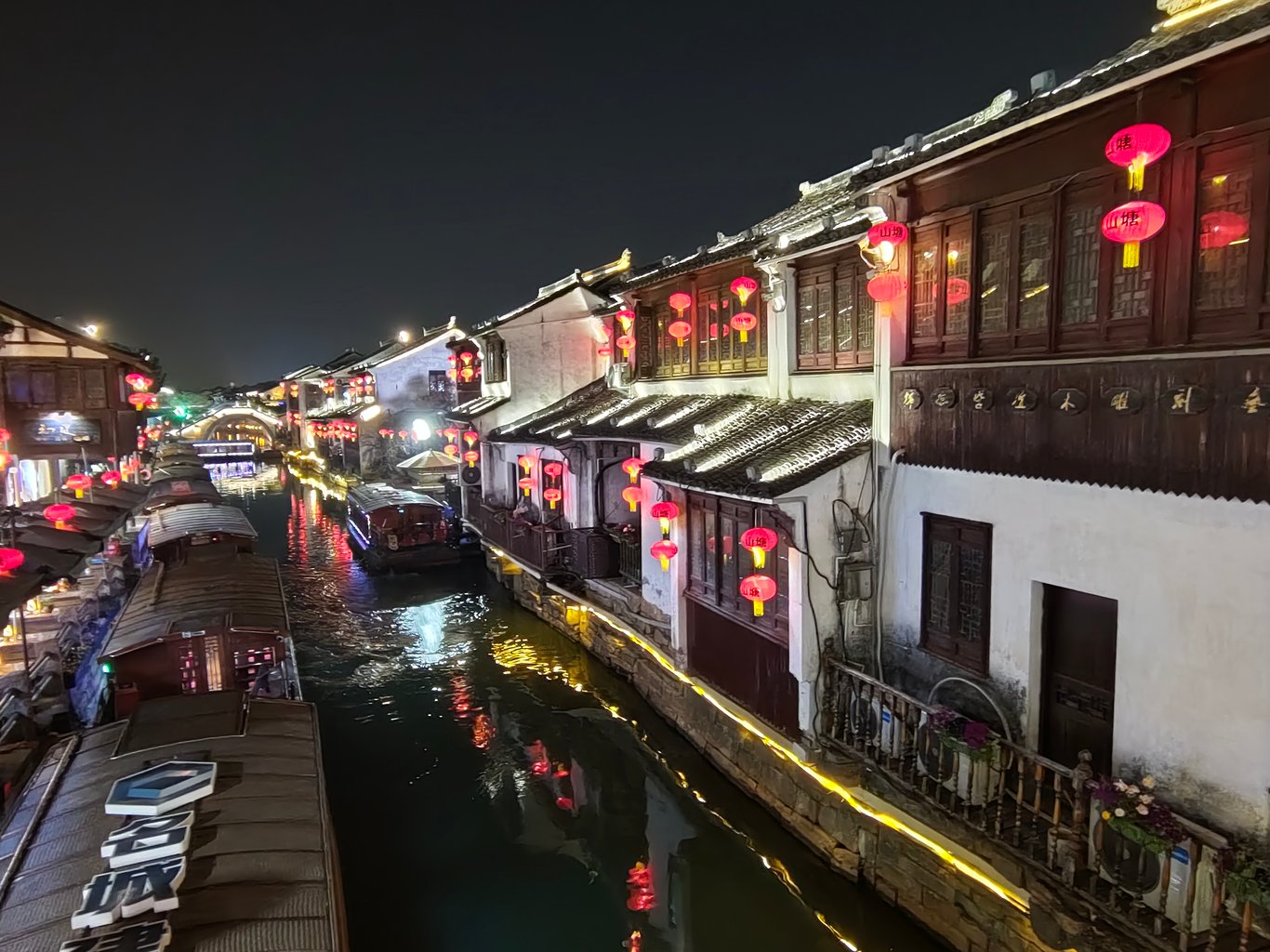 離開拙政園後,因為另一景點七里山塘的山塘街也在附近,而且沒有夜間閉園的問題,還有許多美食小吃,所以我們就轉往那裡逛逛。不得不說,夜間的江南園林風光,在燈光的襯托下,實在是美不勝收。就以本文分享給大家啦~