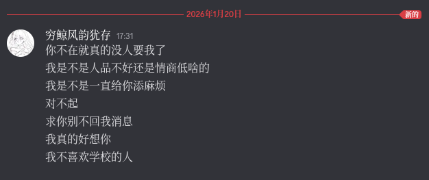 今天没有考试啊哈哈哈哈 于是乎 和印尼同学玩了很久 怎么说 学了一点经济然后 开始疯玩 好吧也不能这么说 先是上厕所 印尼同学突发奇想打算犯贱一下 开始往我脸上弹水 很小的那种 然后她就去擦手了 我打开水龙头获得水珠 来到 印尼同学身边喊一句她名字 结果人家真的抬头了 于是乎被我弹了(