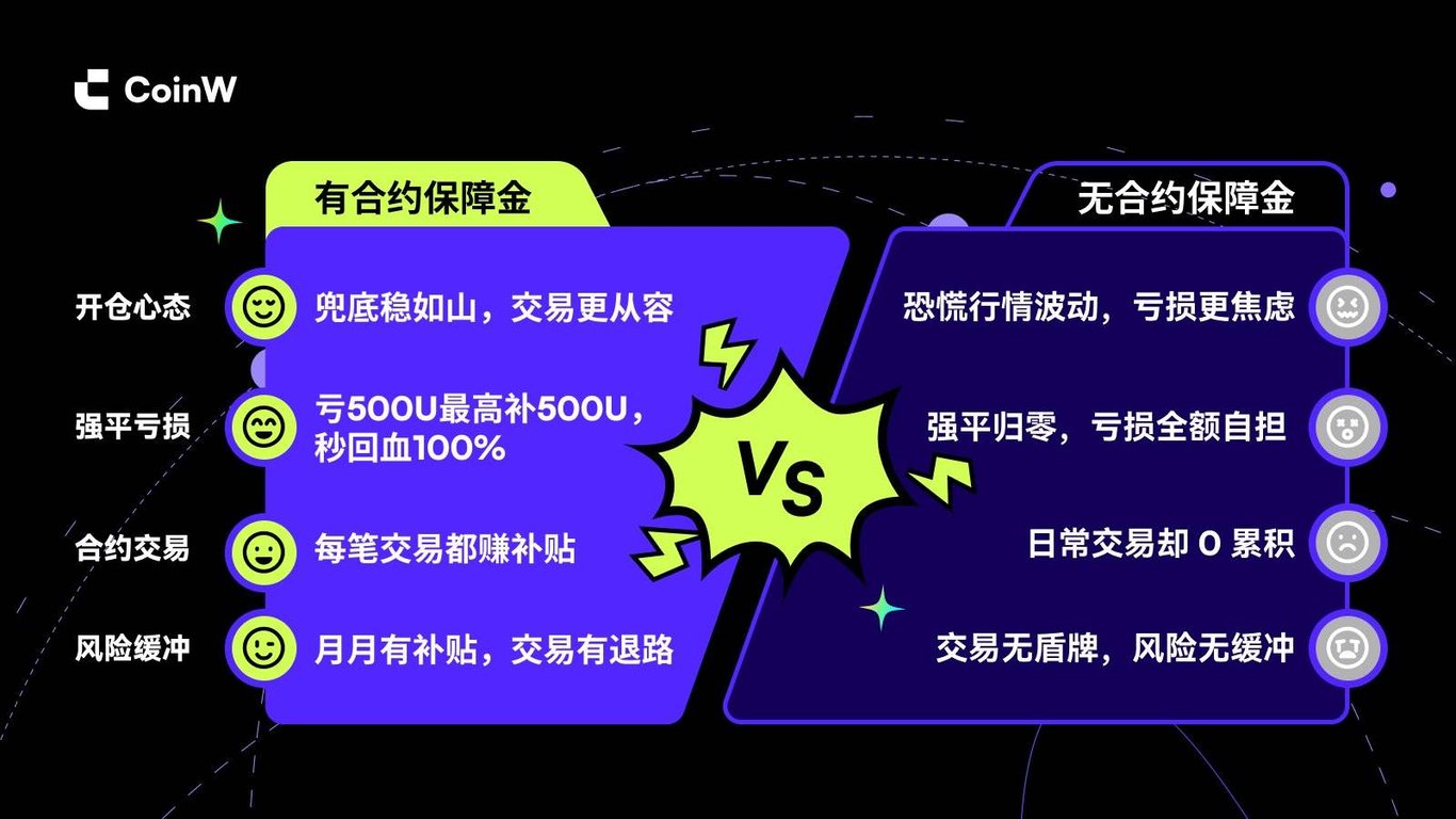 CoinW「合约保障金计划」的推出,不仅很好的迎合了这一用户诉求,更弥补了这一市场空白。