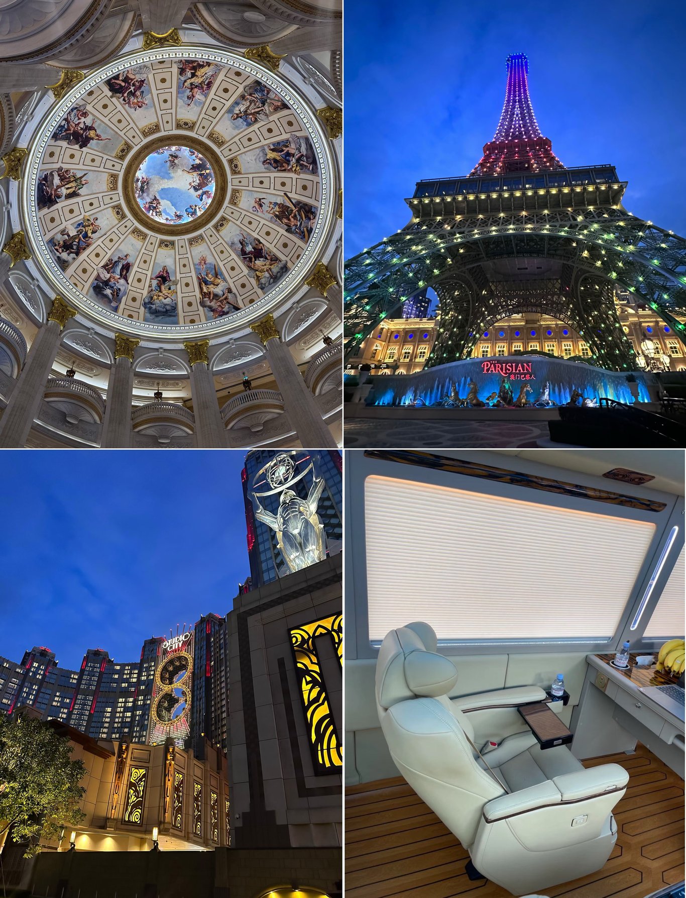 住宿方面,立邦旅運代訂嘅酒店絕對係視覺與體驗嘅雙重盛宴!就話呢間仿羅馬風格嘅酒店啦,穹頂壁畫精緻到每一筆都好似有故事,金黃色嘅裝飾線條搭配油畫風格嘅人物場景,打卡之餘仲感受到濃濃藝術氣息;夜晚行到巴黎人鐵塔下,燈光閃爍嘅鐵塔將澳門夜空點綴得浪漫滿分,影相發朋友圈分分鐘被問爆去咗邊;就連澳門新濠影匯嘅特色建築,都被佢哋安排進行程,讓你一次過體驗多種異國風情。