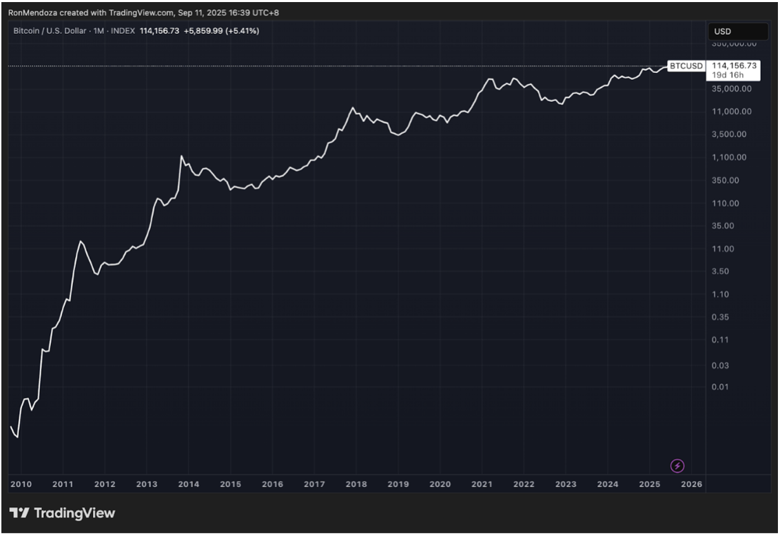 自2010年7月BTC在約 $0.05 起步至今沖上 $114,000,比特幣的累計漲幅已高達 227,000,000%。