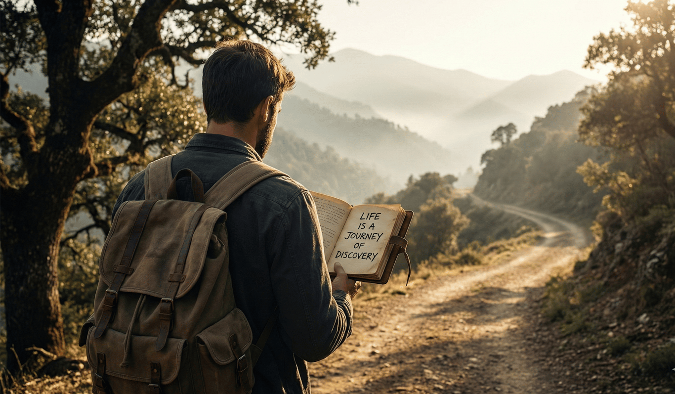 作者把人生比喻為一場探索之旅。我們無法在一開始就知道終點在哪,也無法預見路上會遇到什麼