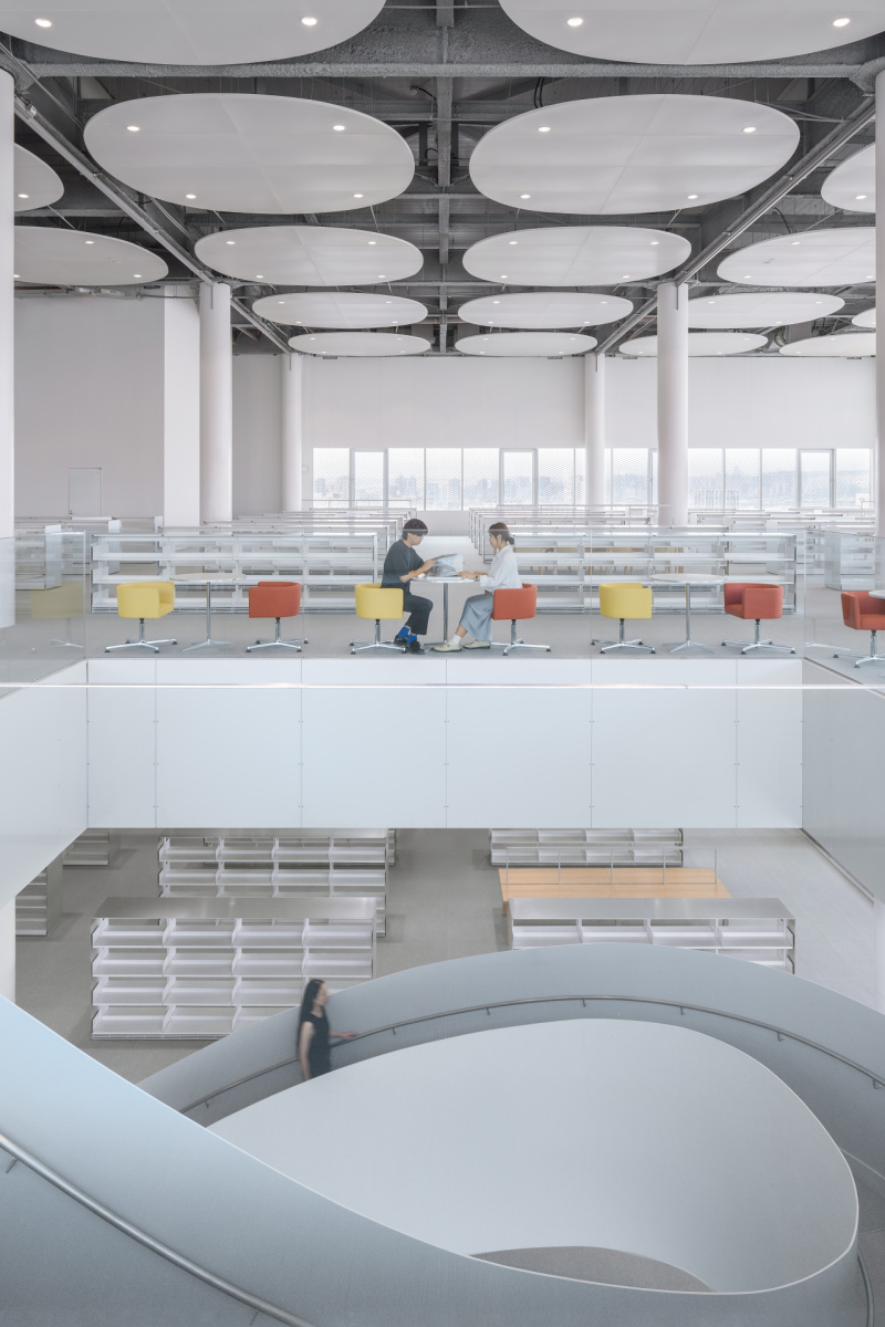 開架閱覽區是較為靜態的空間,陽光會灑進來,視野很美(較高的樓層都屬於相對靜態的區域)。