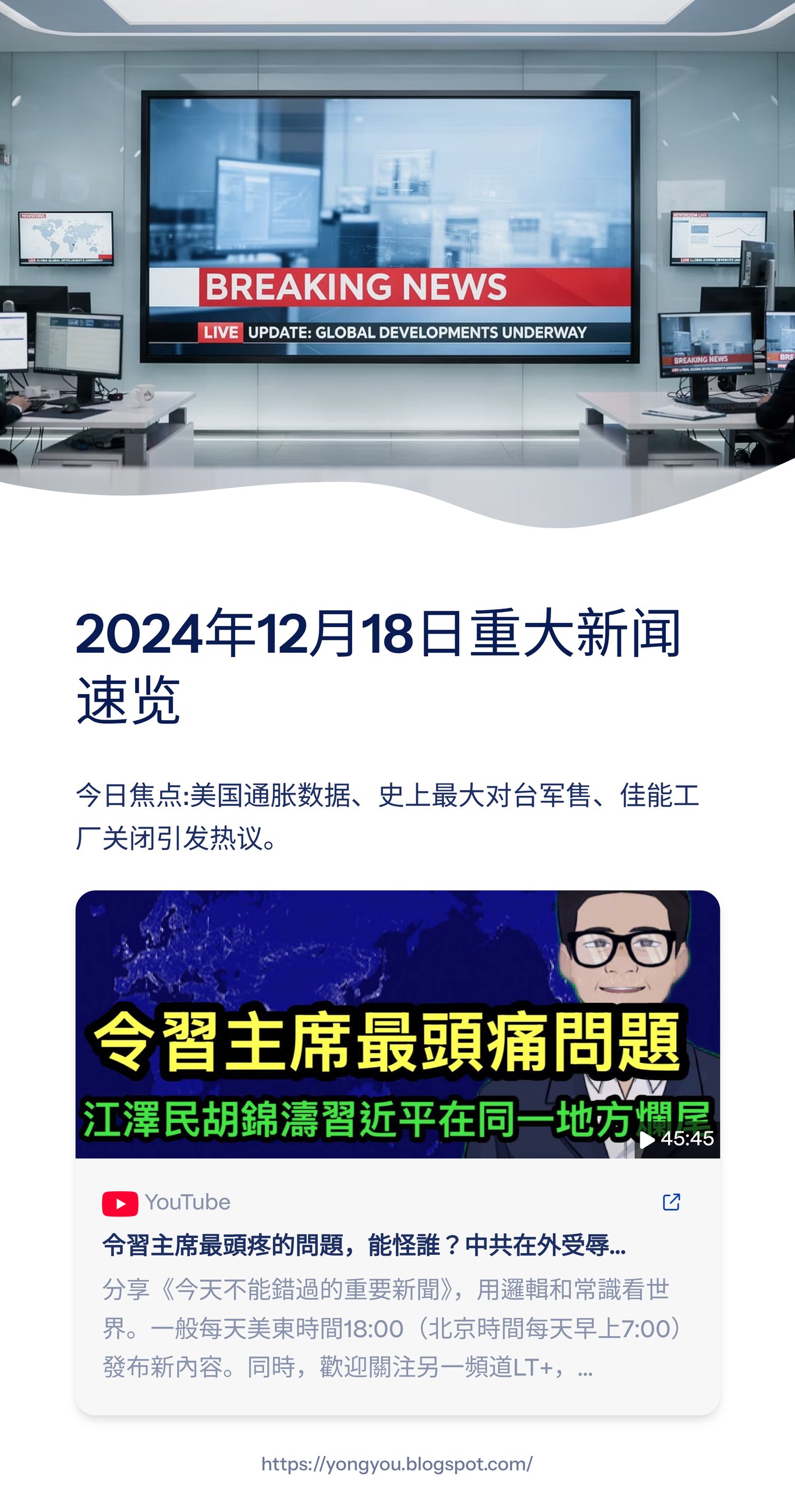 12.18全球观察:美批准史上最大对台军售案 佳能撤出中国引发劳资关系热议
