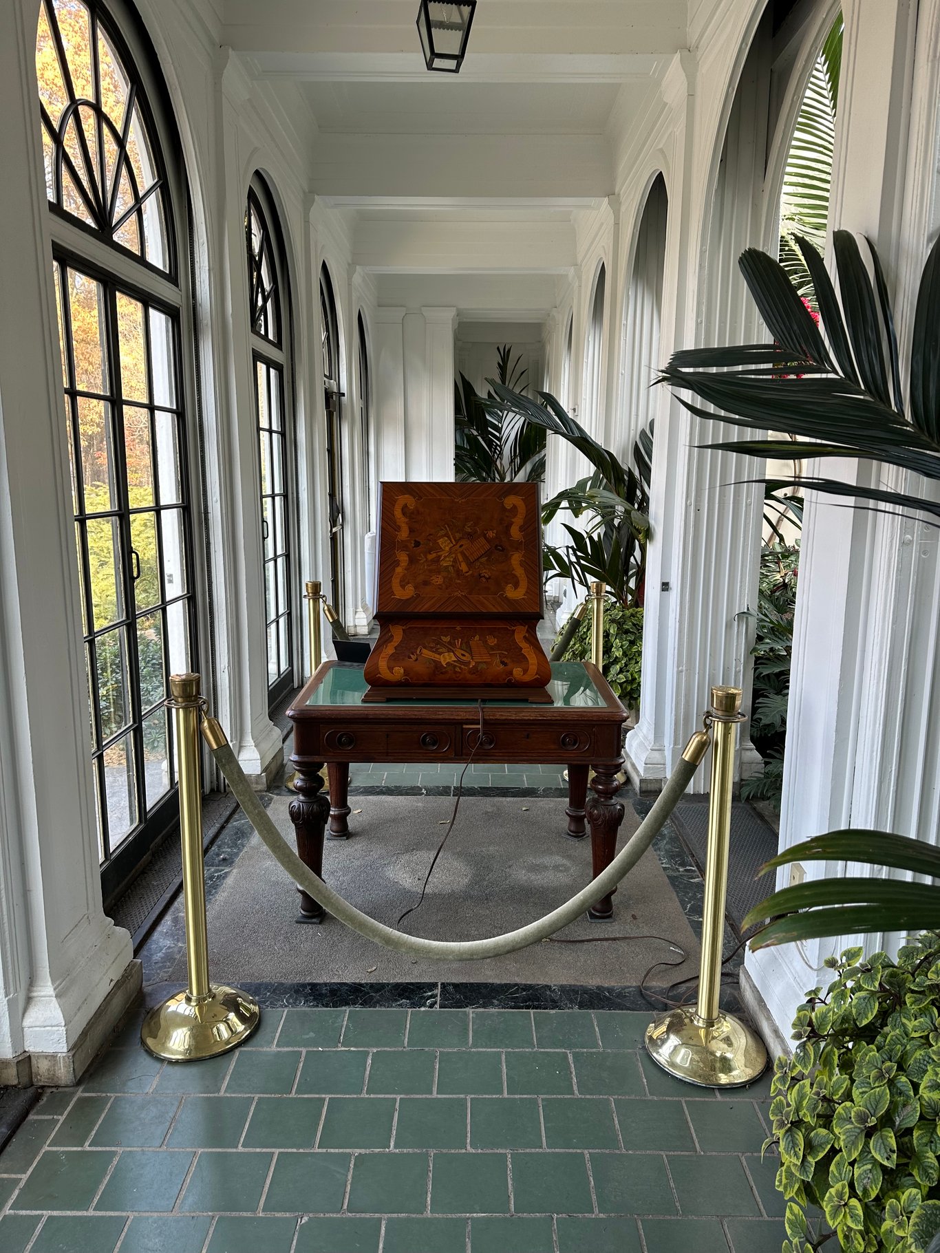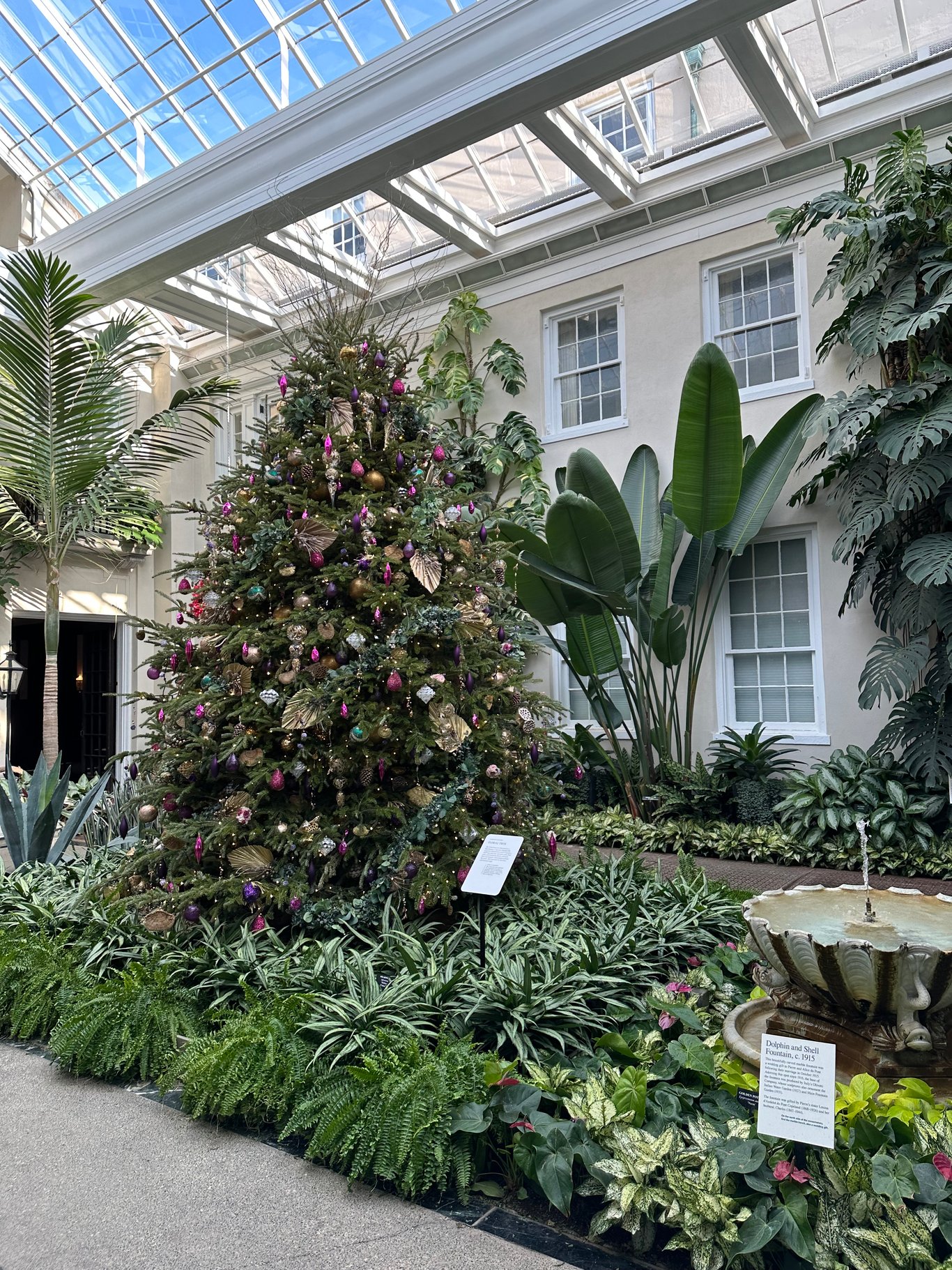在皮埃尔博物馆前,公园已经摆出长木公园的农场车饰。红色的车身还挺喜气的。看来老美也喜欢红色。我们已经好久没进到博物馆里去参观了。现在看灯饰自然要进去看看里面怎么摆设的。