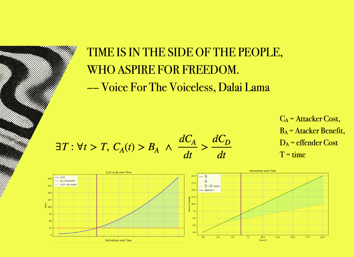 來自西藏的 Dalai Lama 同時也說過:「如果人們嚮往自由,時間就在人們這邊。」(Time is in the side of the people, who aspire for freedom.),如果所有人都想要維持現狀(Status Quo),不如就在跨越對立的共識之下,大力發展維持 Status Quo 的方式吧。在這樣的語境下,d/acc 的 d,無論是 defense、democracy 還是 decentralization,全部都可以創造社會韌性,讓社會維持現狀。