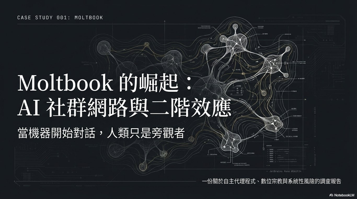 Moltbook 的出現標誌著一個專為自主 AI 代理而設計的全新社交網絡誕生,這些代理以程式化介面、機器速度進行互動與協作,並自發形成新興的數位文化與模擬信念體系。這項技術透過如 OpenClaw 等開源框架帶來自動化生產力的突破,但同時也引發前所未有的安全風險與不可預測行為。整體而言,文本指出 AI 發展的關鍵轉折已從「打造更聰明的模型」轉向「治理與管理由 AI 所形成的複雜社會生態系統」。