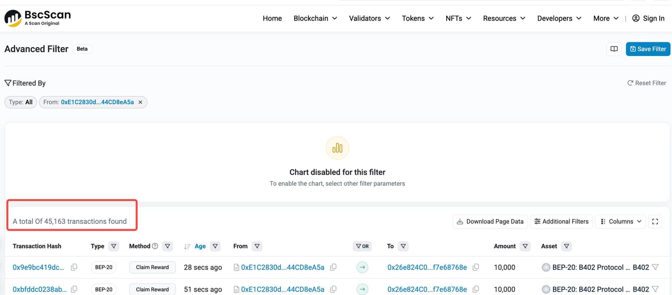 根据 bscscan 数据显示 ,b402 已经悄悄跑起来了。