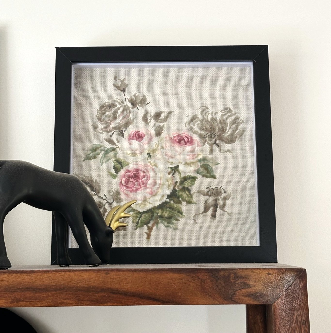 从此我每次拿起十字绣都陷入巨大的焦虑,这不好那么不好,我绣得慢,图样简单,甚至背后都是乱七八糟的。花钱花时间不说,最后裱框还要花钱,一点收益都没有!