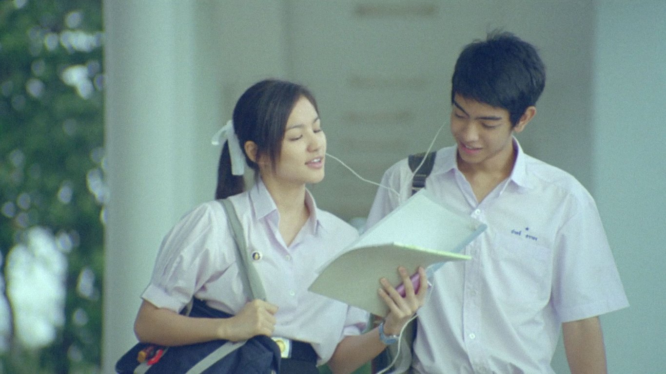 角色之間可能會有分歧,但誤會來得合理,即使生氣也可以理解。Aom暗戀男主角Pom,但Pom喜歡的是Dao。明明捲入了三角關係,但Aom沒有出現扭曲惡毒的心理,也沒有傷害另外兩人的舉動。Aom和Dao這兩個女生的出場鋪墊也很有意思。影片是從男主角的視角出發的(point of view),他喜歡的Dao在第一幕已經出現了,但她的聲音直到影片的第20分鐘才出現,訴說自己的音樂理想,而且這把聲音還是出於男主角的想像。Dao直到第40分鐘才正式擁有自己的台詞。與之相比,Aom的出場稍晚,但台詞、表演的機會來得更早、也更豐滿。於是觀眾可以領會到,Aom才是真正的女主角。