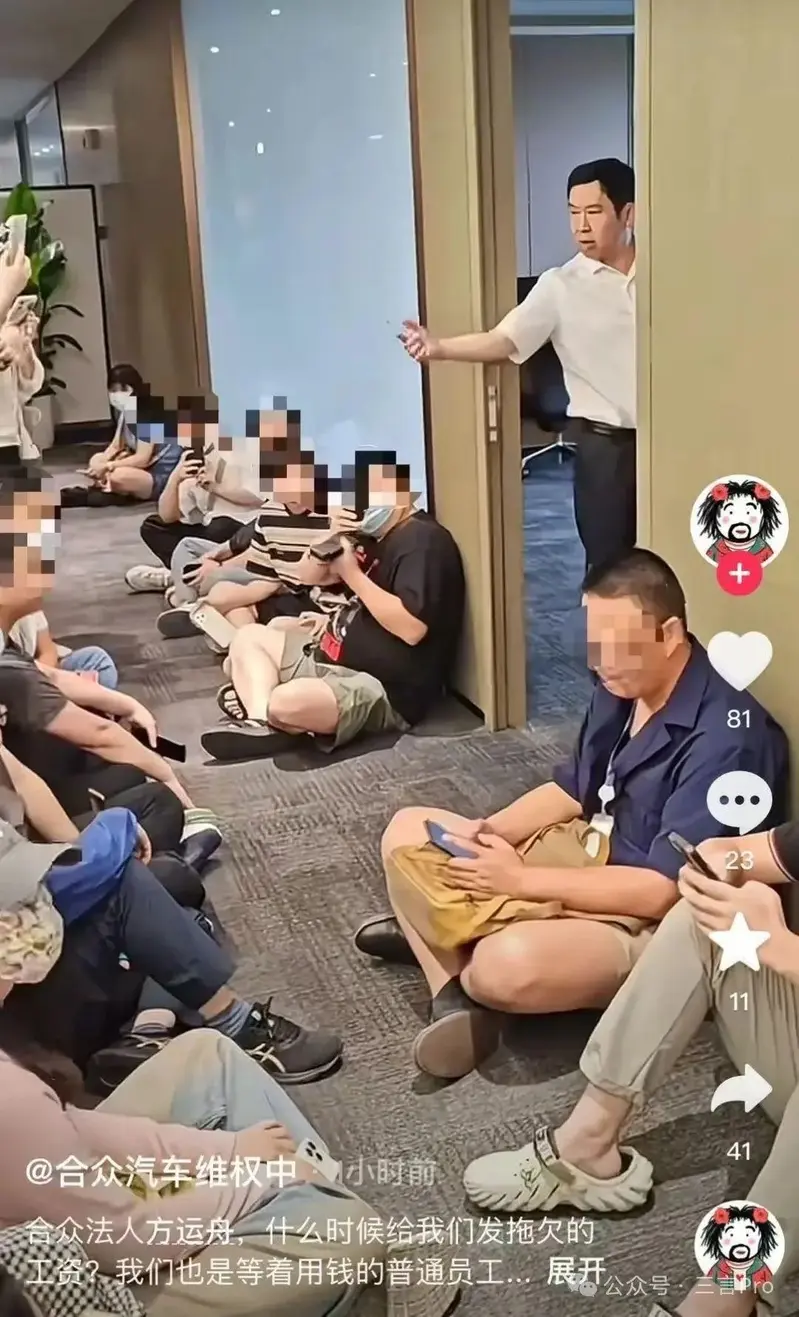 6月11日,哪吒汽车新总部开工首日,数十名员工因被拖欠工资,围坐董事长兼CEO方运舟办公室门口集体讨薪。视频显示员工情绪激动,方运舟态度强硬,回应“先选三人谈”,随即关门,引发员工不满。此前,公司多次被曝裁员、降薪、债转股失败、融资无果。6月12日,总部通知员工居家办公,门禁失效。来源1,来源