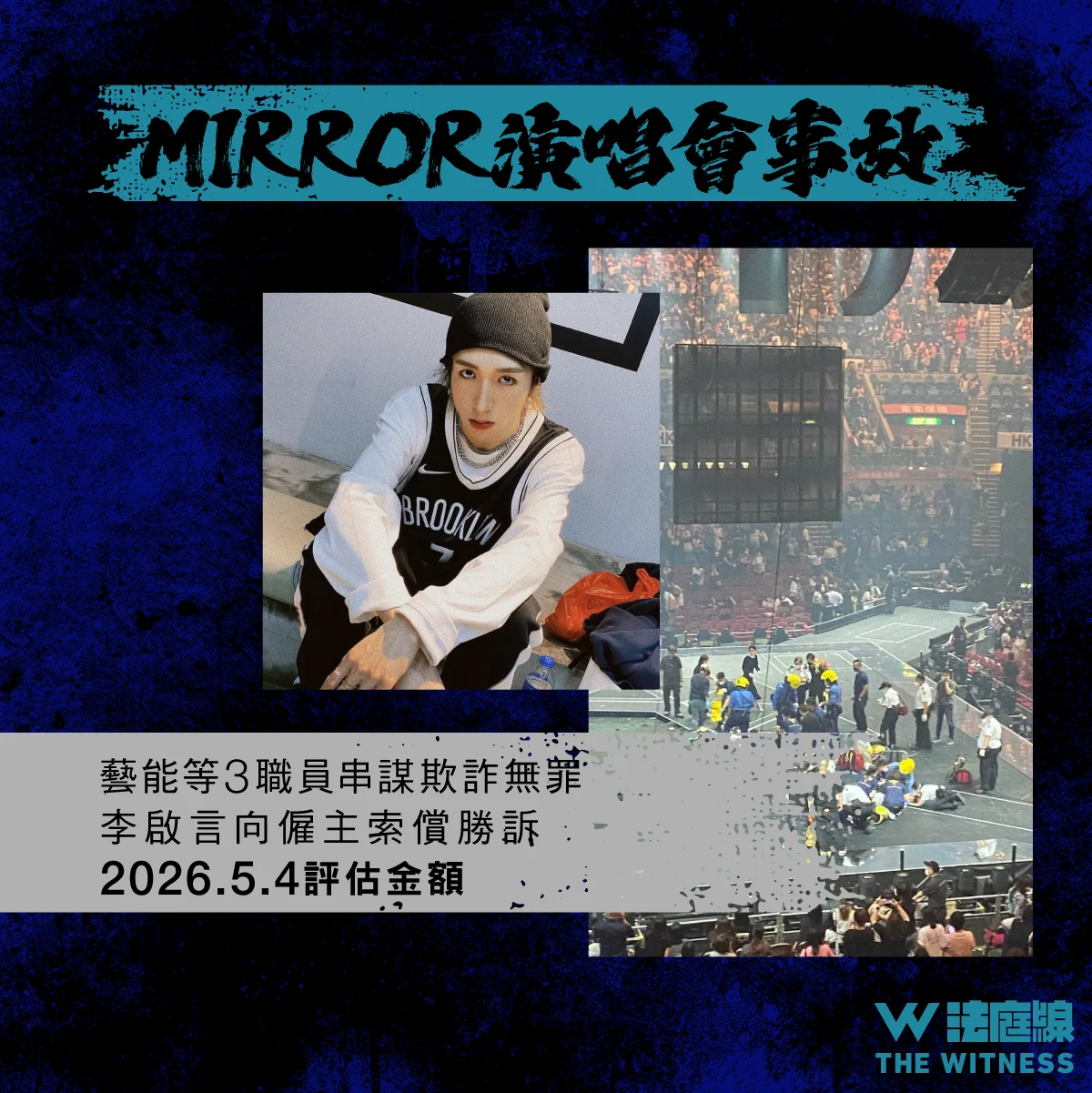 另外,2022 年男團 MIRROR 紅館演唱會發生事故,大型屏幕墮下令舞蹈員受傷。工程總承辦商「藝能工程」兩名職員及「廣域策劃」的項目經理,被裁定串謀欺詐罪不成立。《法庭線》整理審訊內容、判詞,重組事故經過。