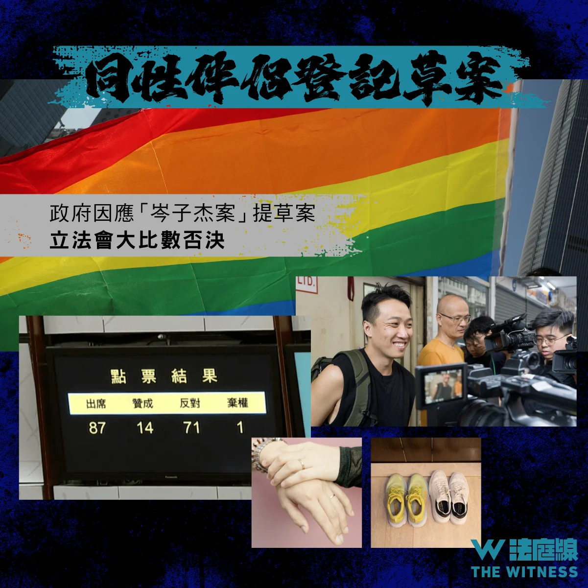 立法會今年 9 月恢復二讀辯論《同性伴侶關係登記條例草案》,議員終以 71 票反對、14 票贊成及 1 票棄權,大比數否決草案,為屆議會首次否決政府法案。