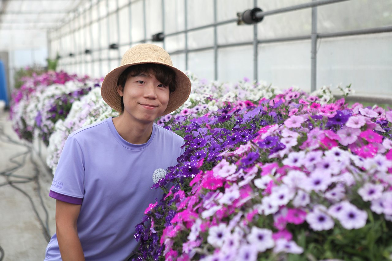 謝丞傑是田尾小孩,家人以種菜跟九層塔為生,他年幼就愛佈置花園,也選擇就讀員林農工園藝科,同時以網路自學花卉知識,其中花色多樣的長壽花,是他特別關注的項目之一。