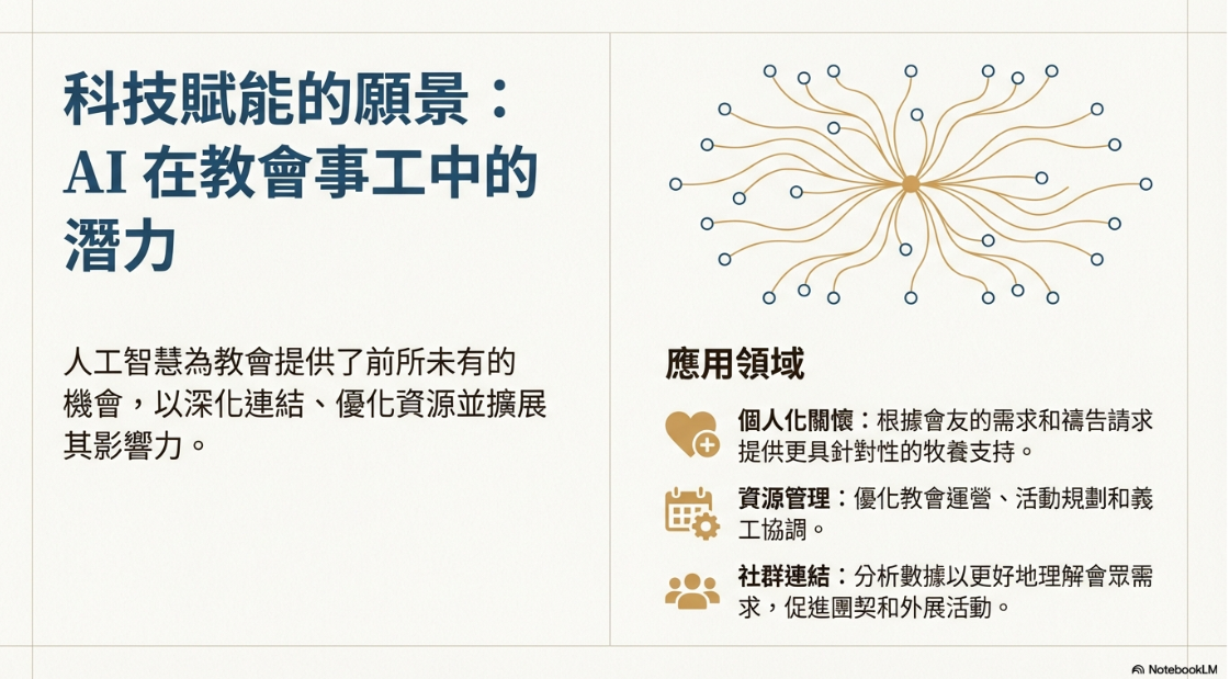 人工智能在教會中就像是一座蓄水池;若管理不善(缺乏透明度與監控),它可能會造成數據洩漏或信任危機的洪水;但若建好堤壩(倫理框架與問責制),它便能成為滋潤事工、服務社群的穩定水源。
