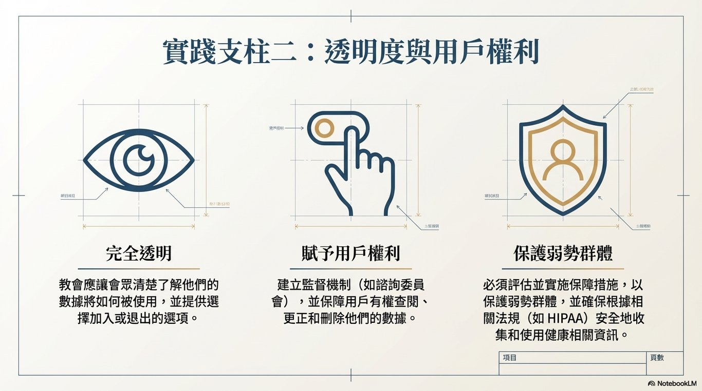 • TRUST 框架: 這一框架結合了國際公認標準(如 IEEE 的倫理設計)與基督教原則,包括人性尊嚴、透明度與良好的管家職分