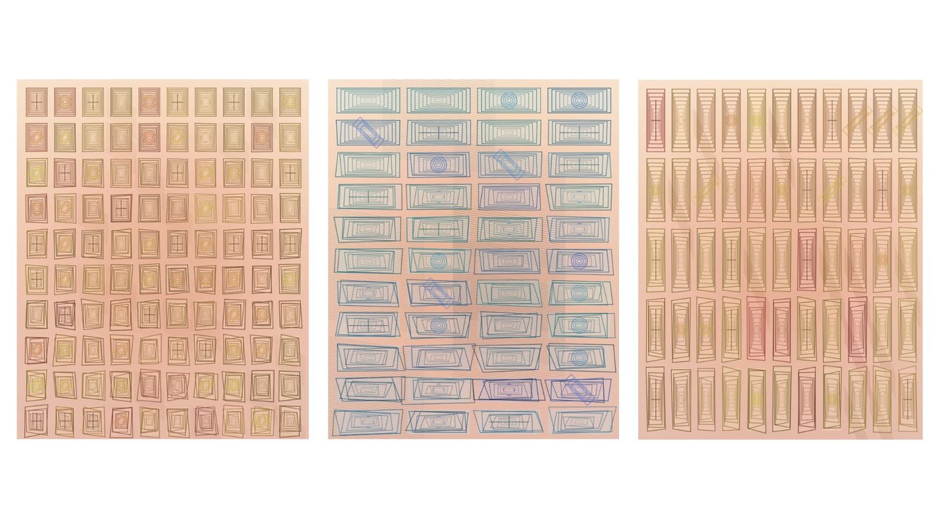 花磚之所以迷人,不是因為它「完全一樣」,而是因為小小的不一樣:釉色的深淺、邊緣的起伏、時間留下的細痕與裂縫,甚至是當下的光影。把這個觀察放回程式,我嘗試與 AI 合作,在規則排列的方形中加入隨機的歪斜、透明度與色彩變化。每次執行後,畫面中的線條、顏色便會在疊合中產生新的關係。