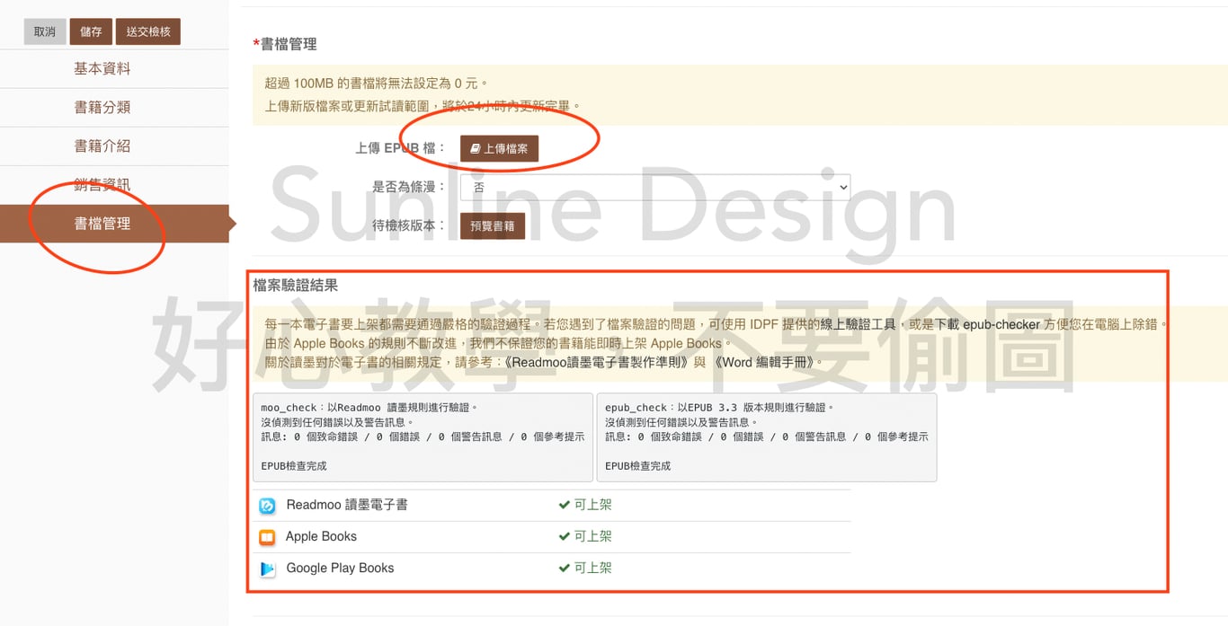 接著你可以進到moopub弄個帳號,去新增一本書,在書檔管理那裡上傳檔案: