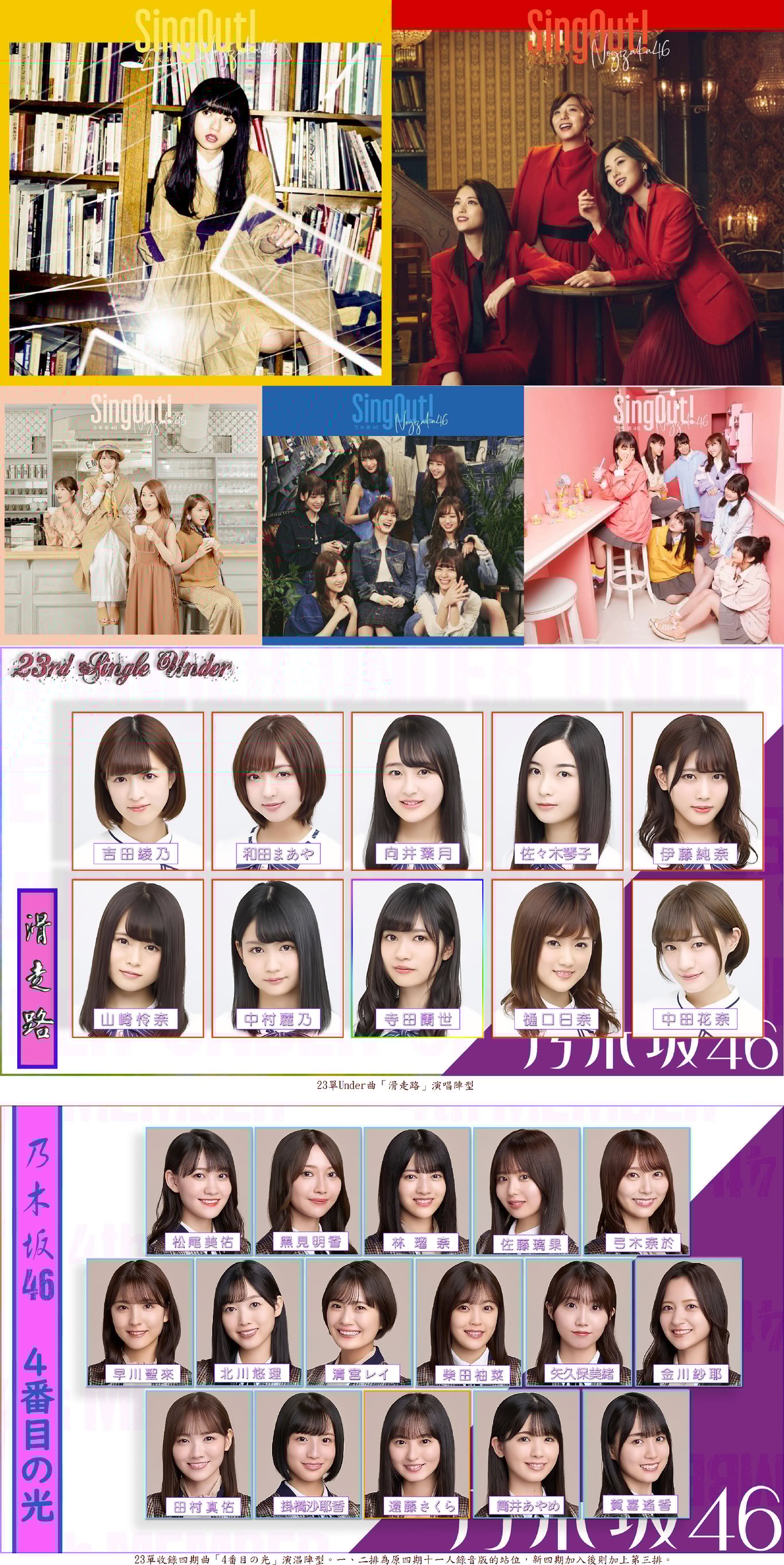 發行第23張單曲「Sing Out!」,初動100.4萬張,再度榮登公信週榜榜首。本作各版本共計七首新歌,包括表題曲、Under曲、期別曲各一首,及四首收錄曲。期別曲為四期生演唱的「4番目の光」,是四期生的第二首期別曲。Under曲「滑走路」由寺田蘭世第三度担任UC。其後錄得121萬張銷量,名列2019年間第三位,並得到日本唱片協會百萬認證及Million Seller認證。