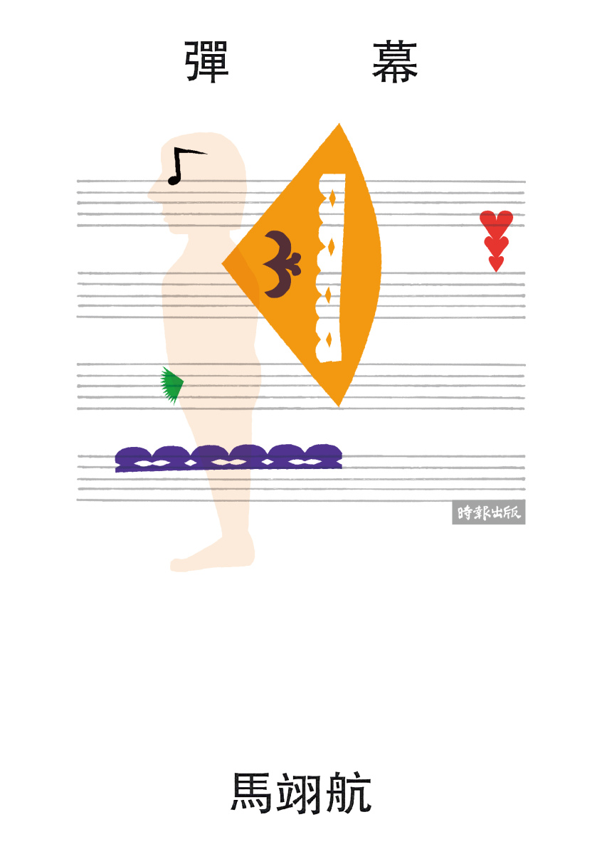 由此明白,以「彈幕」、「垂簾」定位的馬翊航,對於自己作為承攬與書寫這些工作幕後的作者,當移動到前方去,便有了「鳩佔鵲巢」的謙遜;移動到後方去,又有「為人作嫁」甚或「借巢育雛」的托舉。我也不免腦補起一種「彈幕護體」的功能,這種跟隨彈幕的發明而來的新造詞,實則利用重複發出評論文字以佔滿屏幕,幫忙示警即將到來的驚心畫面或惱人聲響,表述一種「魔幻時刻」;也為他人守備護衛,而身體就是世界。是一種「前方高能」的連動提示,遂也成了一種另類敘事。