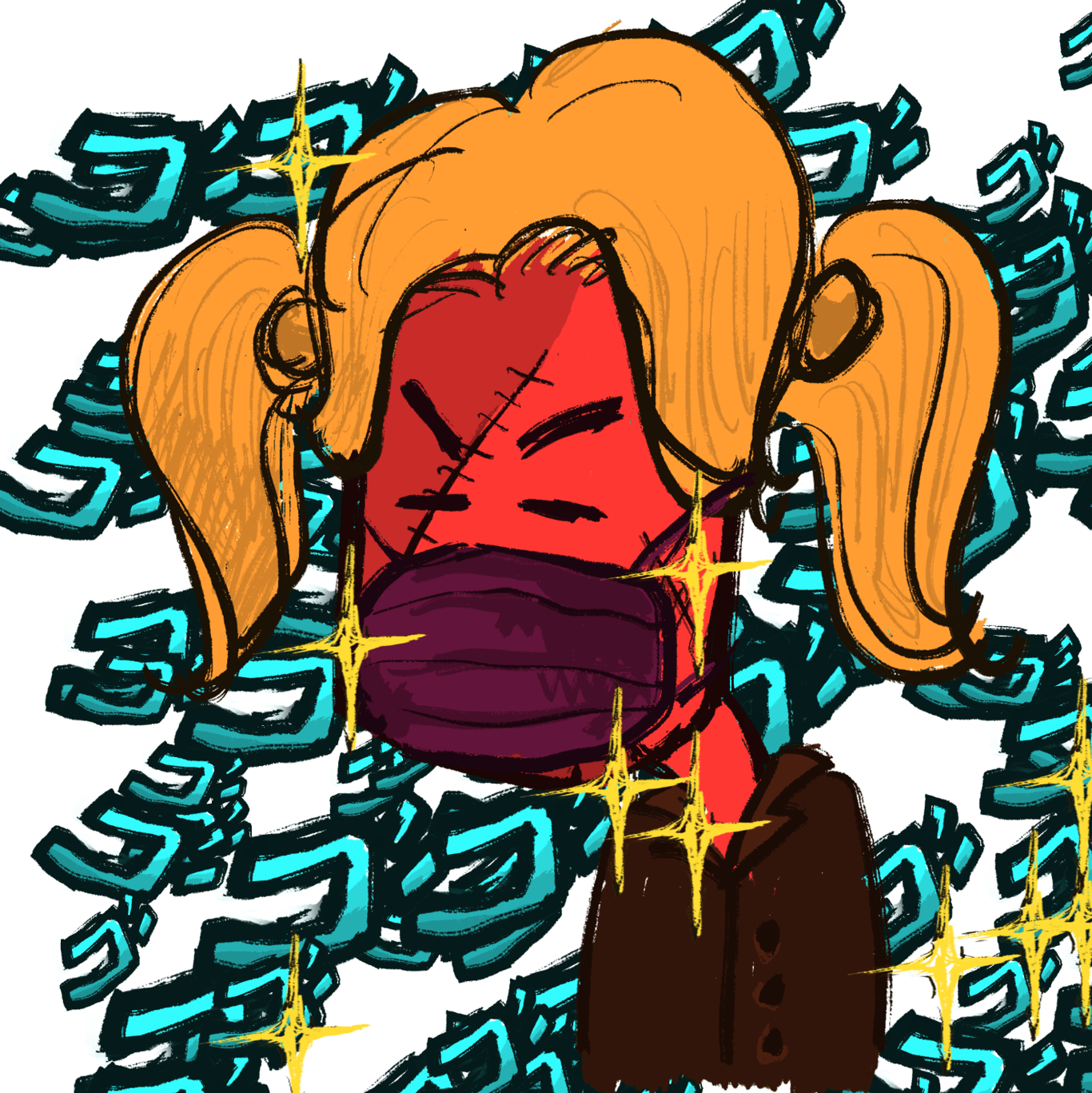 將背景的ゴゴゴゴ設為主要色調的對比色以及其相似色