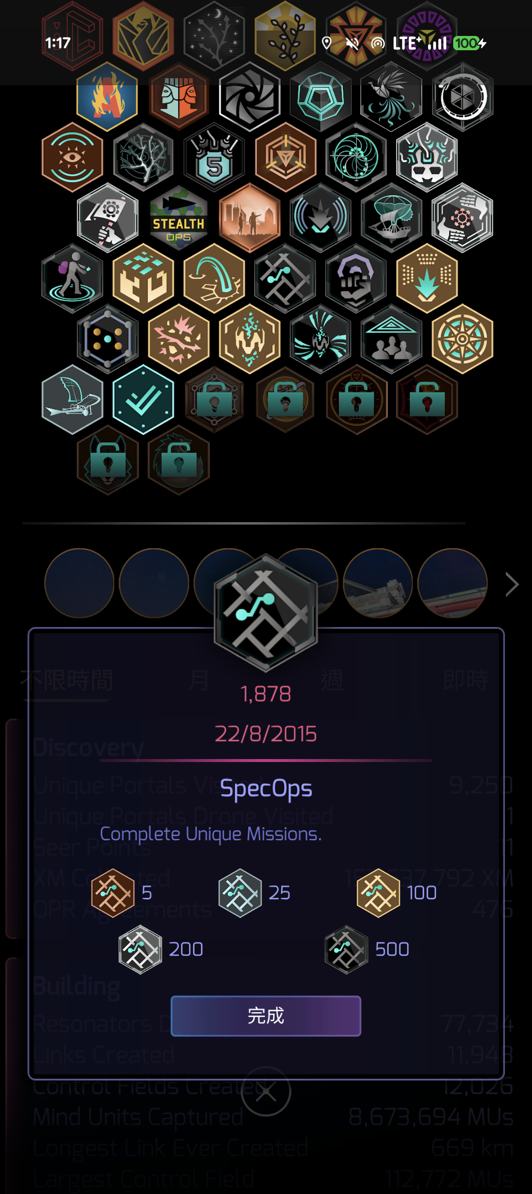 我曾瘋狂投入 Ingress 🎮。這是我人生中玩過最久的手遊,也是 Pokémon GO 的圖資來源。核心玩法是 Portal-Link-Field 的陣營戰,而 Mission 是我最喜歡的部分。完成後,Agent Profile 會顯示 Medal 🏅。因為 Medals 是以 6 個為一排顯示,許多玩家會創建 6 的倍數的 Missions,讓 Medals 拼成完整的畫面 🖼️。我在 Ingress 完成了 1878 個 Missions,這是我投入的狂熱 🔥。
