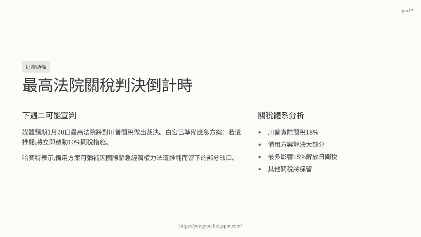 从川普关税判决到中共清理政府欠款(1月17日)