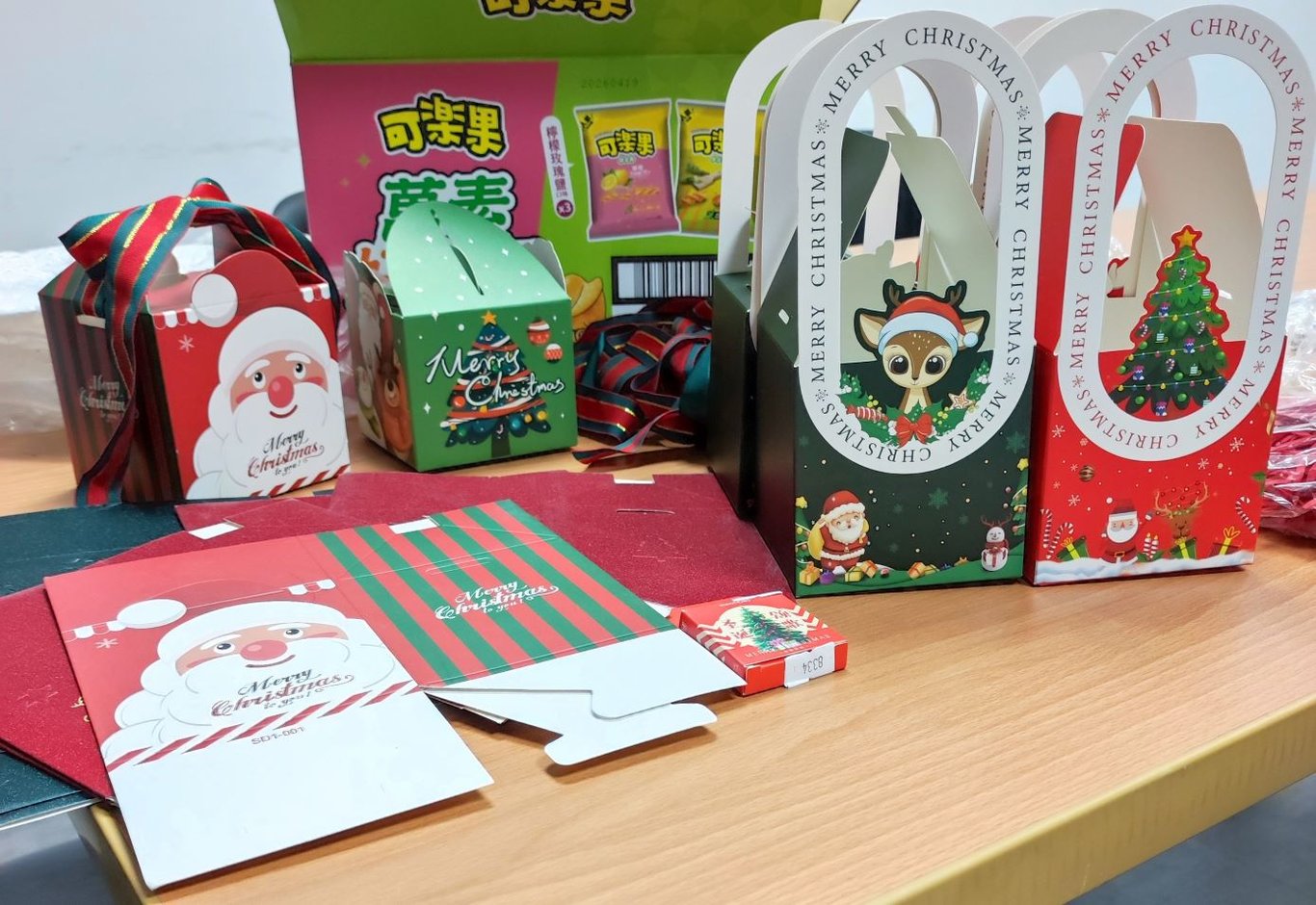 因為有預算考量,反正要都長得差不多已經不可能了,當下決定把之前買的聖誕紙盒也拿出來用掉!