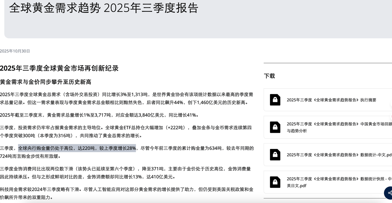 第二,也是最關鍵的,全球央行的購金行動根本沒有停止!世界黃金協會報告稱,僅僅第三季度,官方部門就淨購買了220噸黃金,將年初至今的購買量推高至634噸,接近去年的紀錄水平。