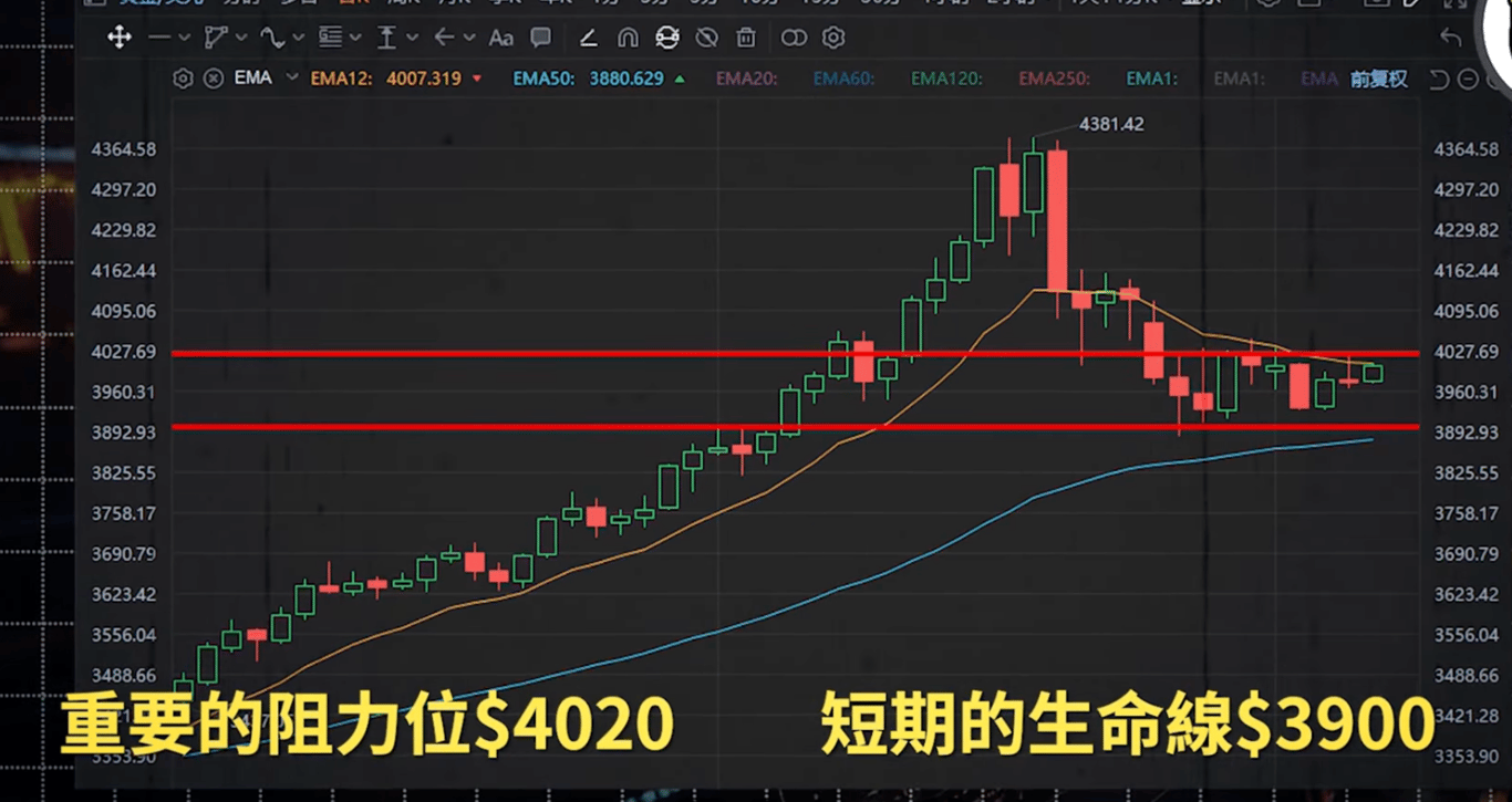 而下方的3900美元是短期的生命線,如果跌破,就可能向3850美元甚至我們提到的關鍵支撐區3835-3878美元去找支撐。