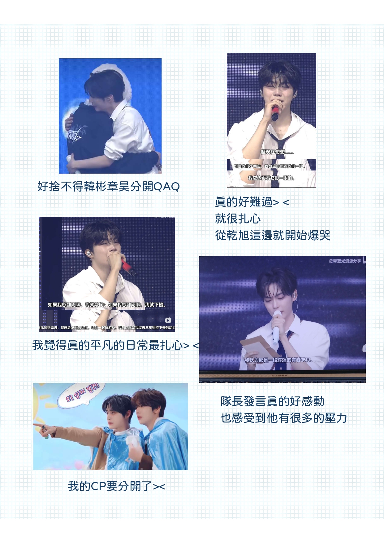 雖然我不是那種非常勤奮追星的 ZEROSE,但想到以後九個人不能再以「ZEROBASEONE」這個名字完全體地站在舞台上、開心地一起工作,就覺得蠻傷心的。想到像 IZ*ONE 要合體一樣,變得極其困難甚至不可能。我一直愛的是九個人在舞台上共同發光的樣子,如果變成了五個人,我不一定會像現在這樣愛他們。